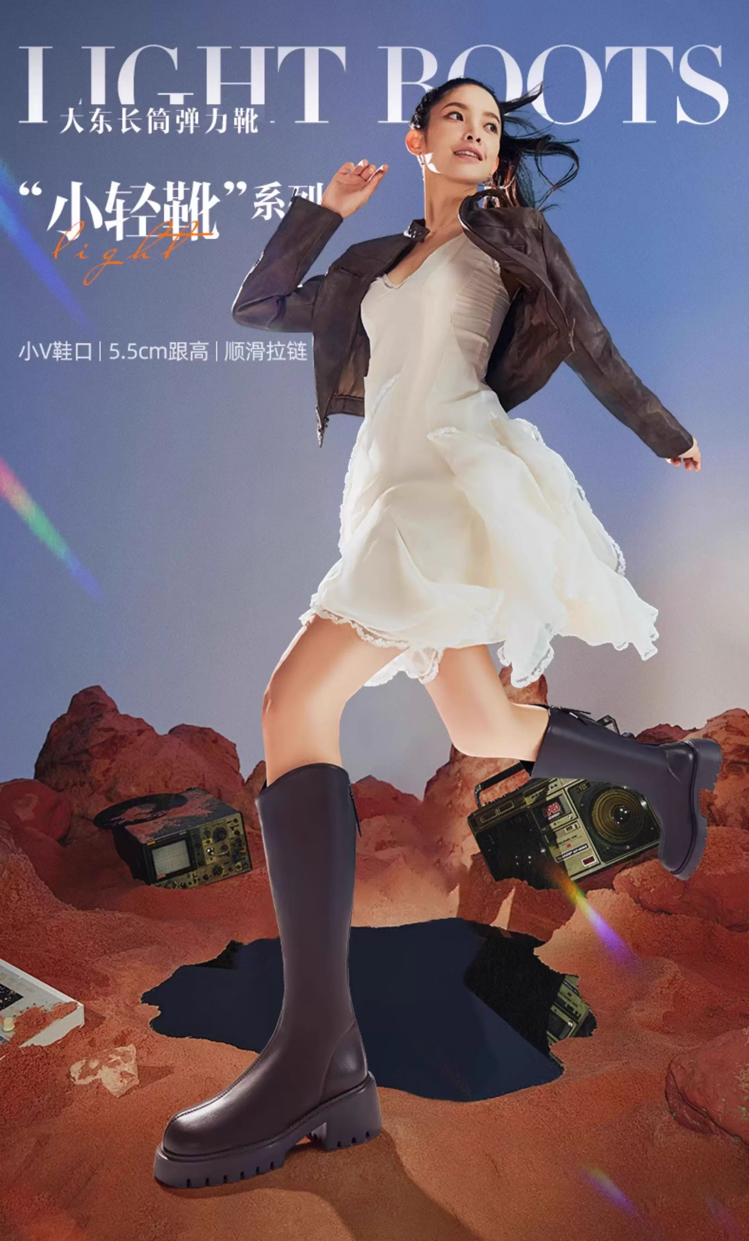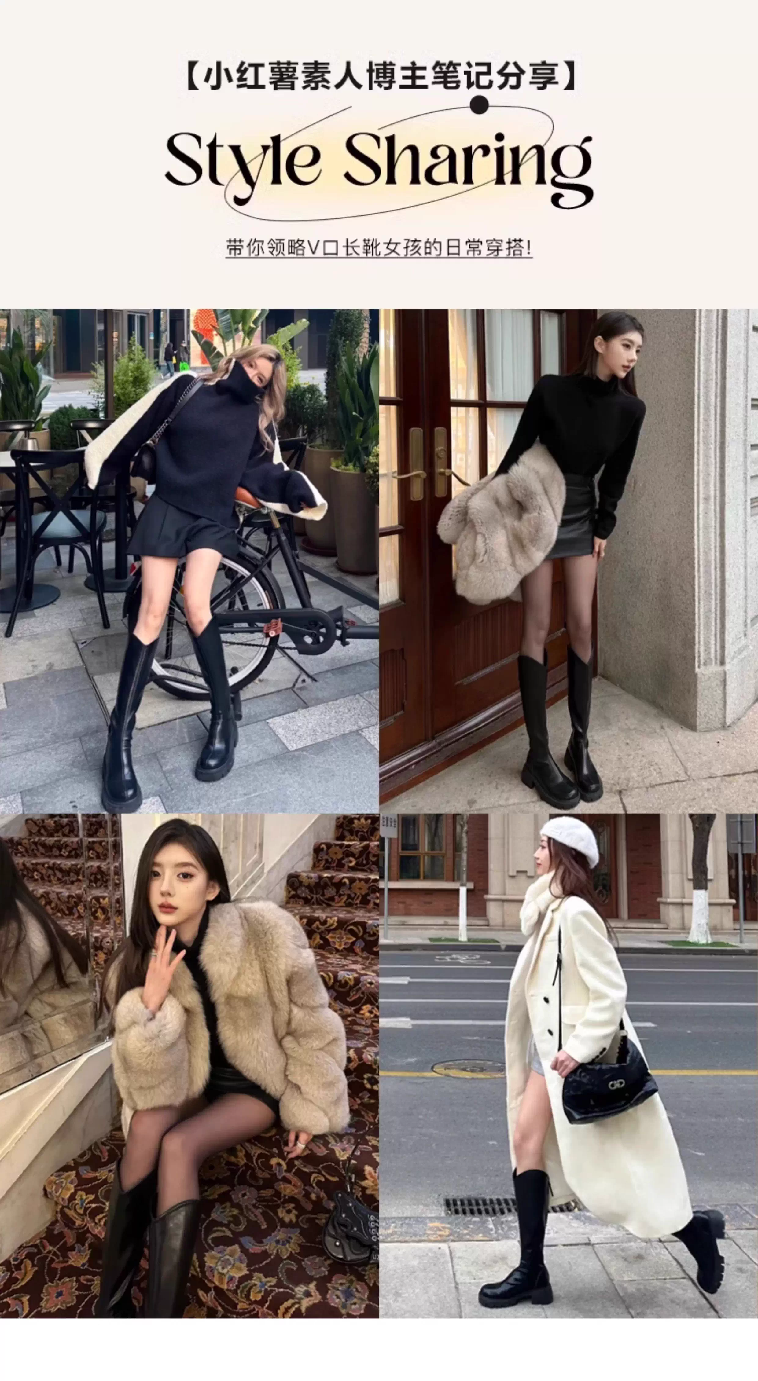 - Giày bốt Dadong bốt dài nữ 2025 mới thu đông bốt cao cổ cổ chữ V bốt dài đế dày bốt nữ lót lông cừu bốt đi xe