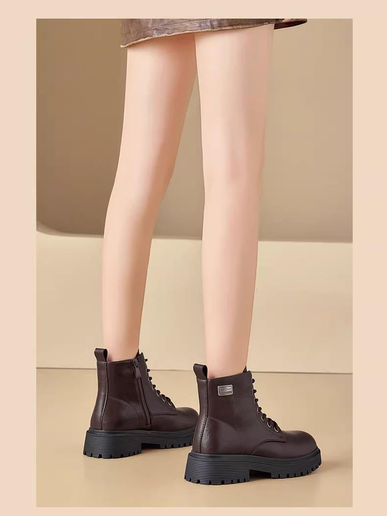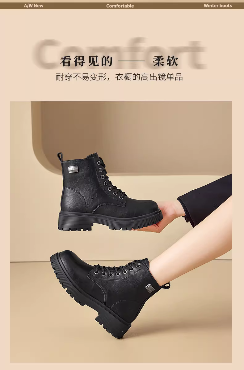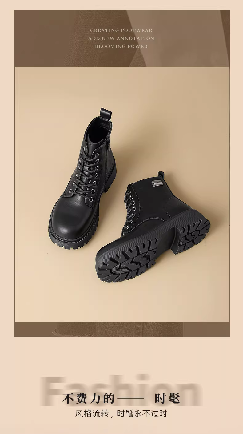 - Giày bốt Dadong Martin dành cho nữ 2025 kiểu Anh mới màu đen đế dày gót vuông mùa thu sớm giày bốt ngắn tăng chiều cao giày bốt đơn