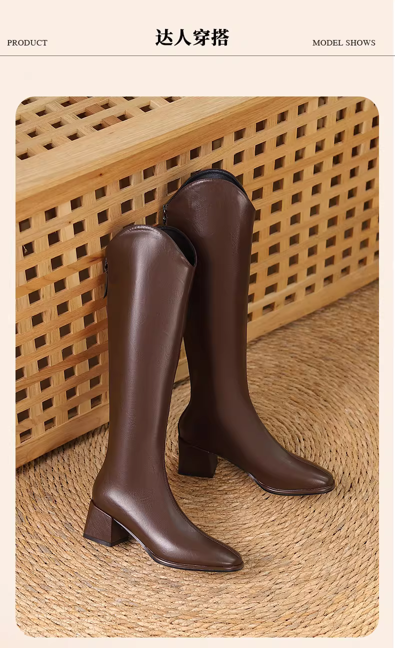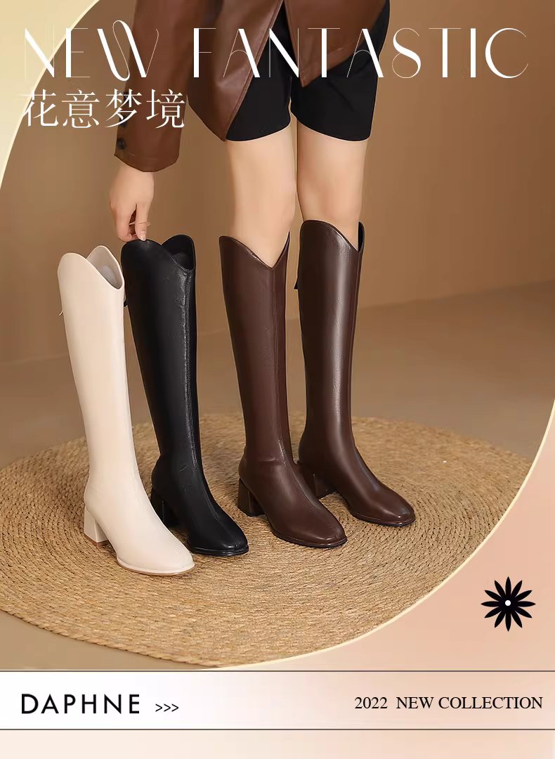 - Giày bốt dài Daphne kiểu V dành cho nữ, giày cao gót mùa thu đông 2025, giày bốt cưỡi ngựa nữ, bốt cao màu nâu, bốt nữ.
