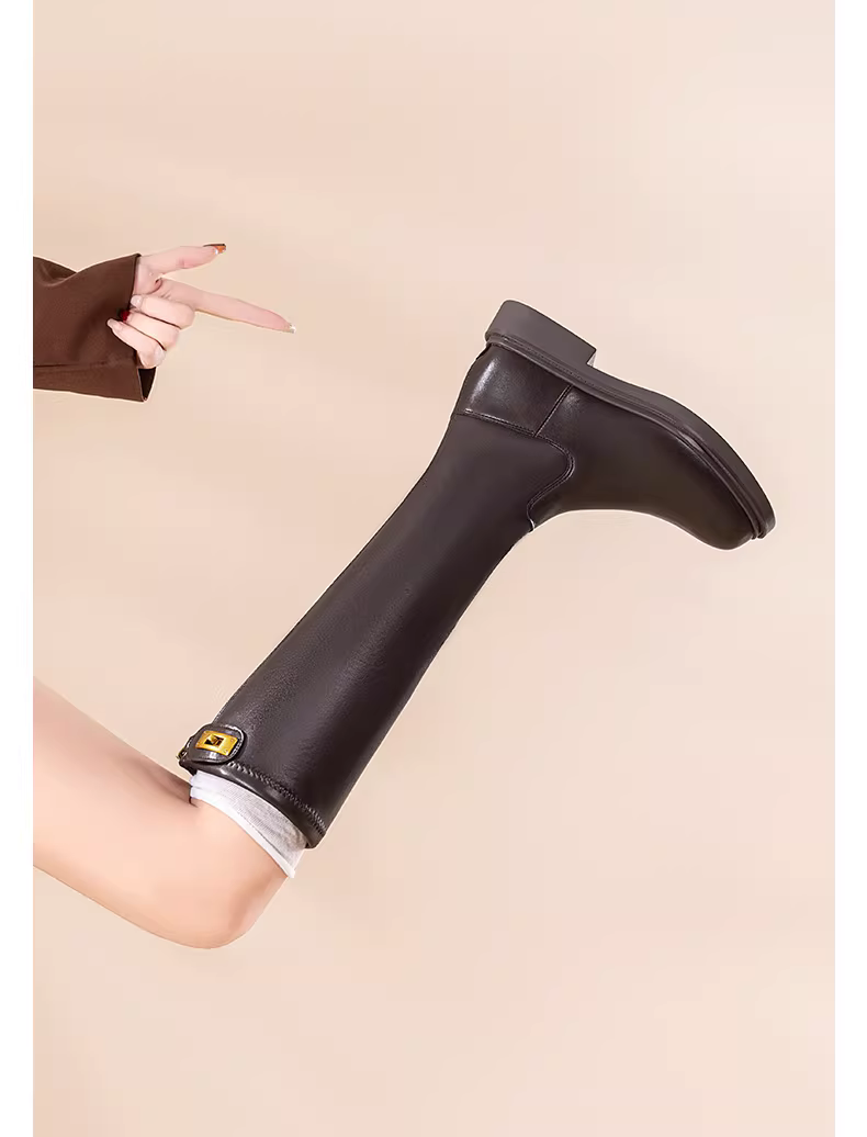 - Giày bốt dài đen dáng thon gọn Dadong dành cho nữ, mẫu mới thu đông 2025, kiểu cao cổ, đi xe máy, rất thời trang.