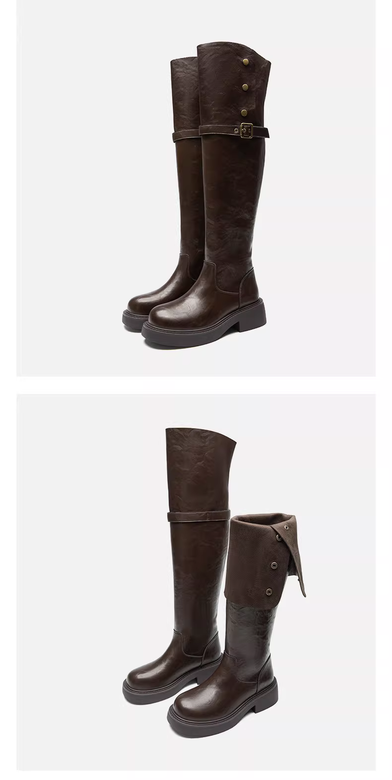 - Giày bốt dài gấp đôi kiểu dáng hai chiều Dadong dành cho nữ, mẫu mới thu đông 2025, màu đen, kiểu cao quá đầu gối, kiểu đi xe.