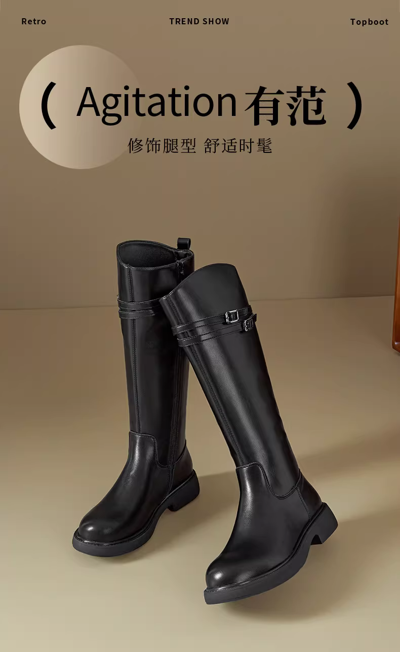 - Giày bốt dài màu đen Dadong dành cho nữ 2025, mẫu mới thu đông, kiểu dáng ôm sát, cổ cao, kiểu dáng đi xe, giúp tôn dáng chân.