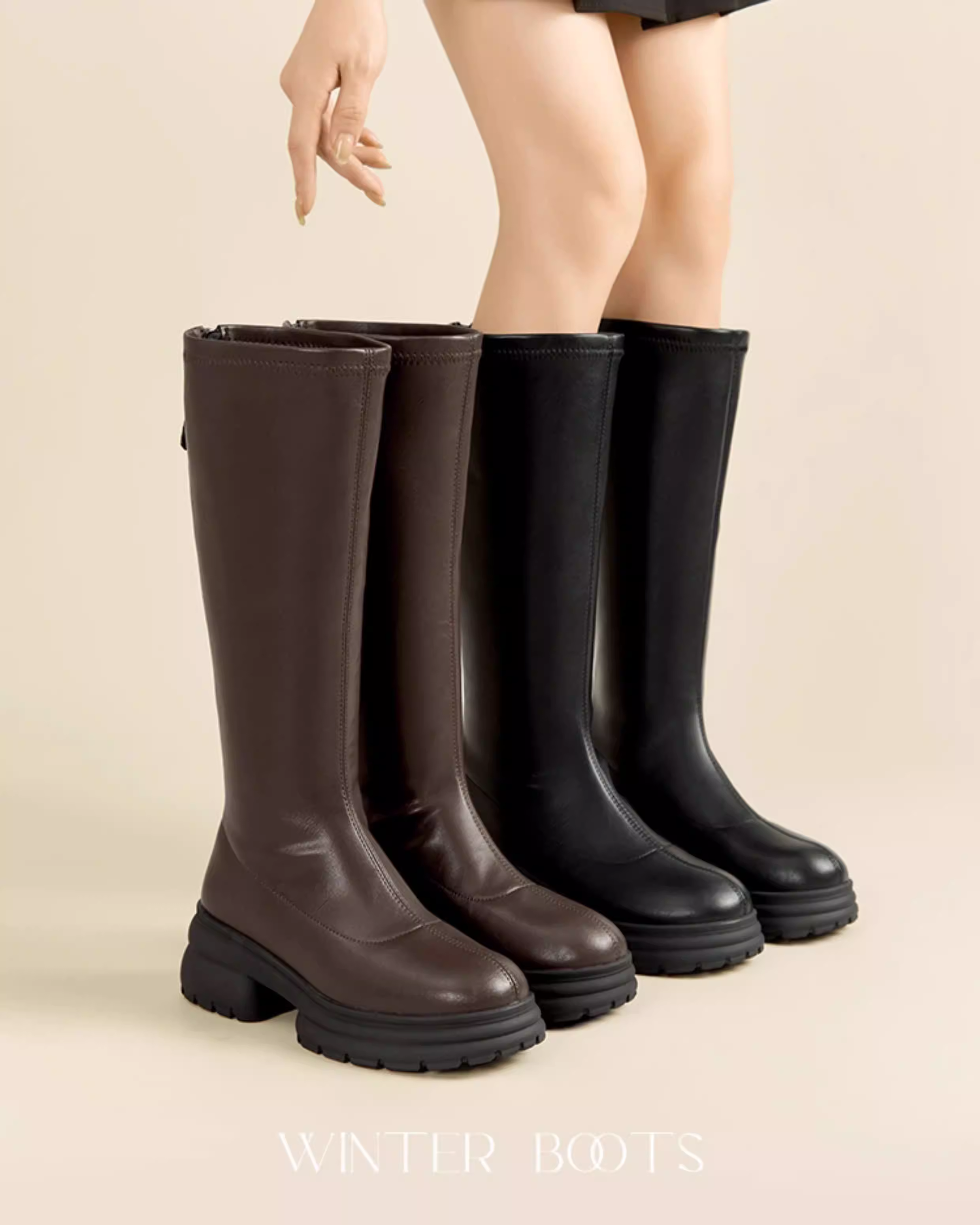 - Giày bốt dài màu đen Dadong dành cho nữ, kiểu mới thu đông 2025, bốt đế dày dành cho người nhỏ nhắn, cao quá đầu gối, giúp thon gọn chân dày, bốt dài.
