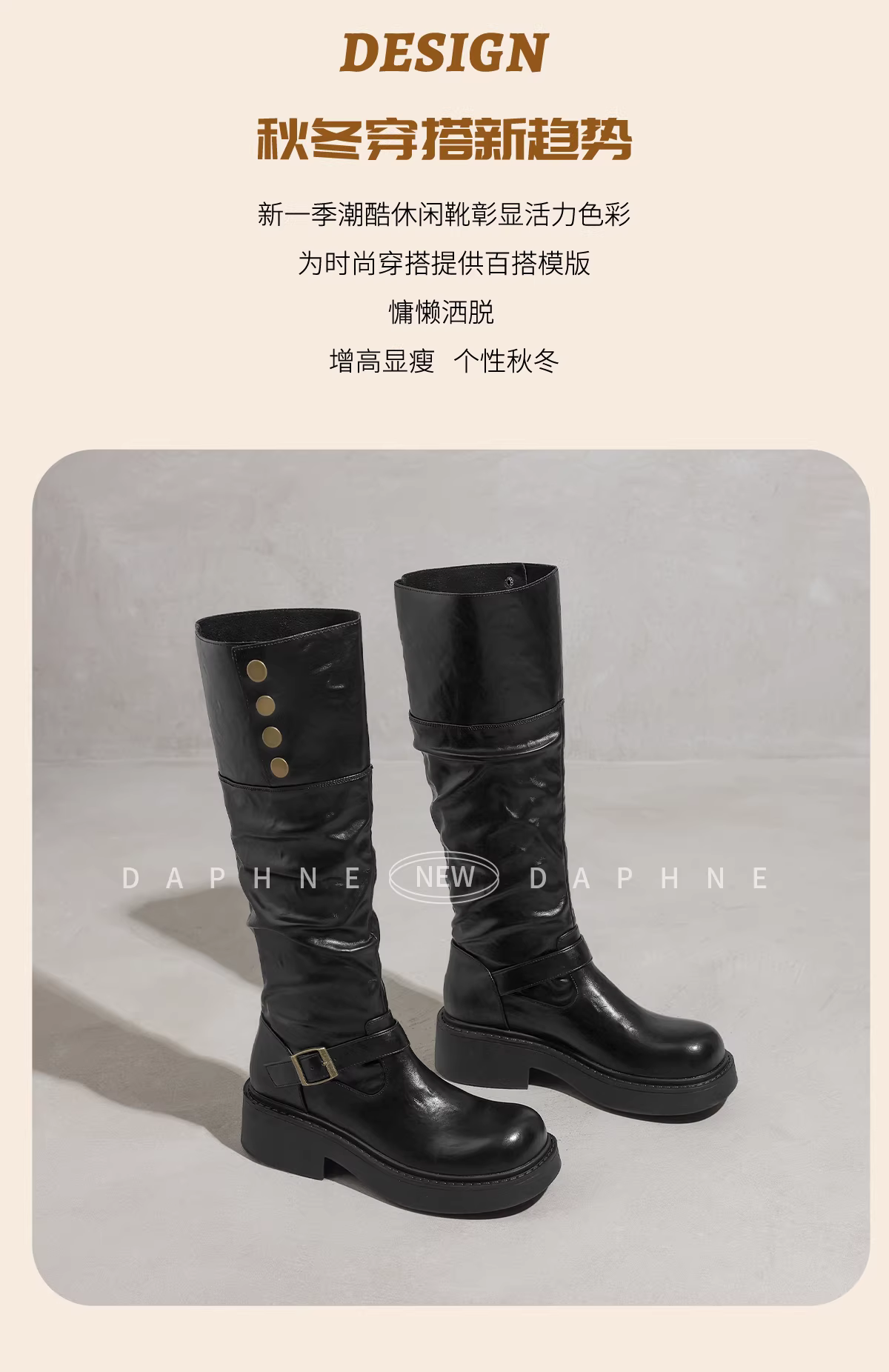 - Giày bốt dài màu đen Daphne dành cho nữ 2025 mới mùa thu đông giày bốt lười lót lông cừu giày bốt đế dày giày bốt kiểu cưỡi ngựa