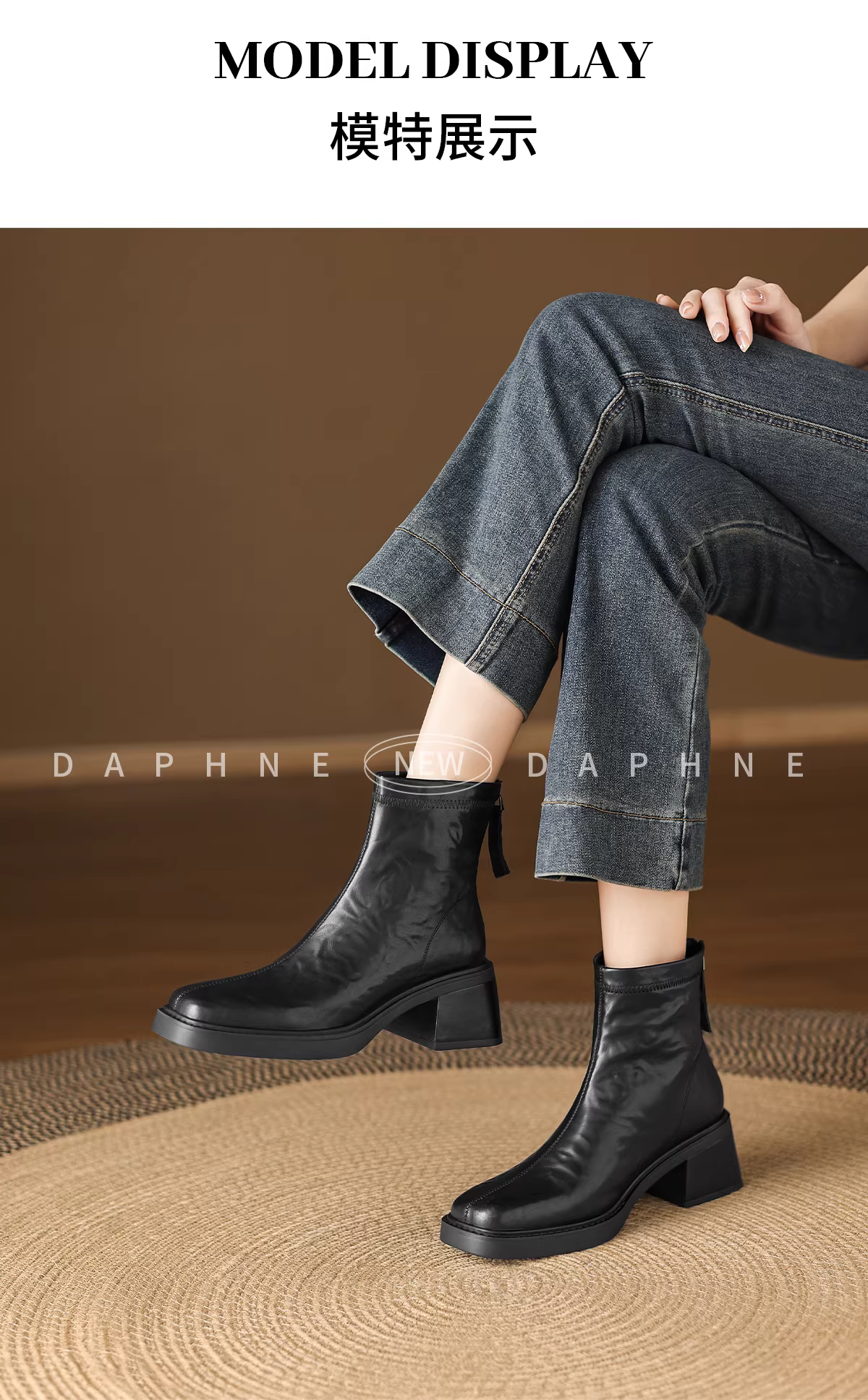 - Giày bốt Daphne Brown Martin nữ 2025 mới mùa thu đông Giày da cao gót Chelsea Giày bốt ngắn Giày bốt gót nhọn Giày bốt mỏng