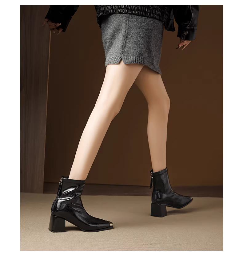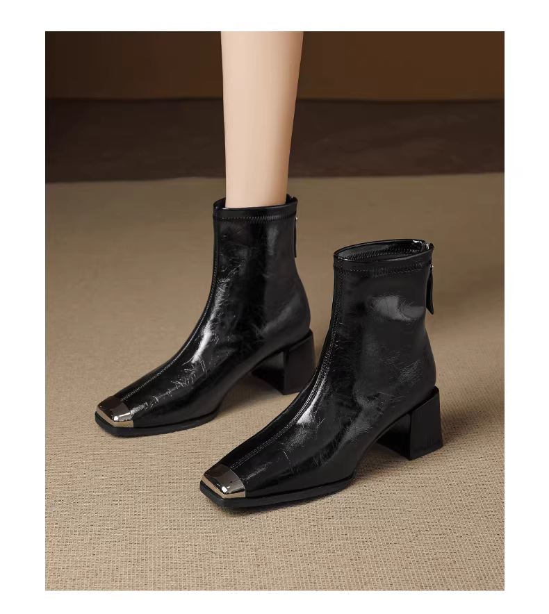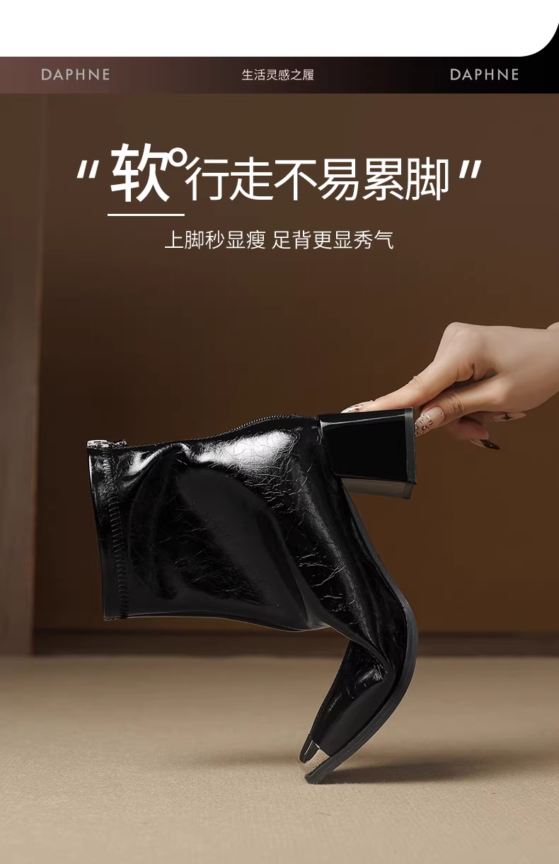- Giày bốt Daphne cổ ngắn nữ 2025 mẫu mới hot mùa thu đông mũi vuông gót cao chunky thời trang đa năng kiểu dáng thon gọn