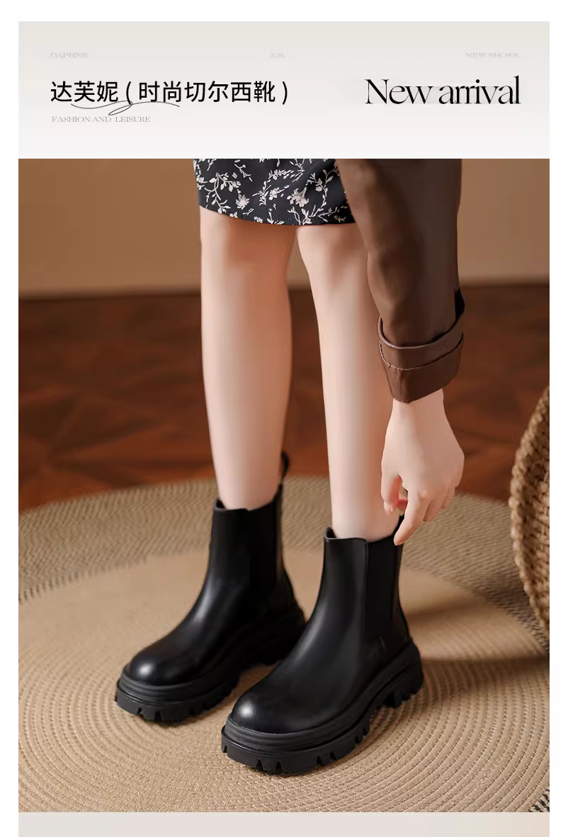 - Giày bốt Daphne Martin dành cho nữ 2025, mẫu mới thu đông, kiểu Chelsea, đế dày, kiểu ống khói, phong cách Anh, bốt ngắn nữ