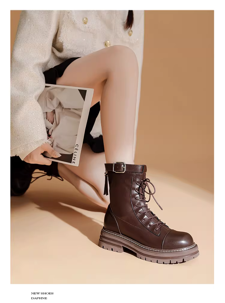 - Giày bốt Daphne Martin nữ 2023, kiểu dáng phổ biến mùa thu, ôm sát chân, kiểu dáng ngọt ngào, cá tính, phong cách Anh, giày bốt ngắn nữ