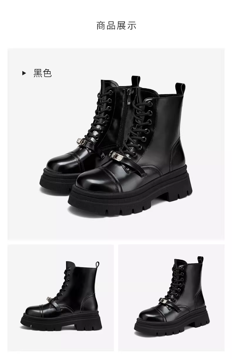 Giày bốt Daphne Martin nữ 2025, mẫu mới thu đông, kiểu Anh, dáng ôm, màu đen, đế dày, cổ ngắn.