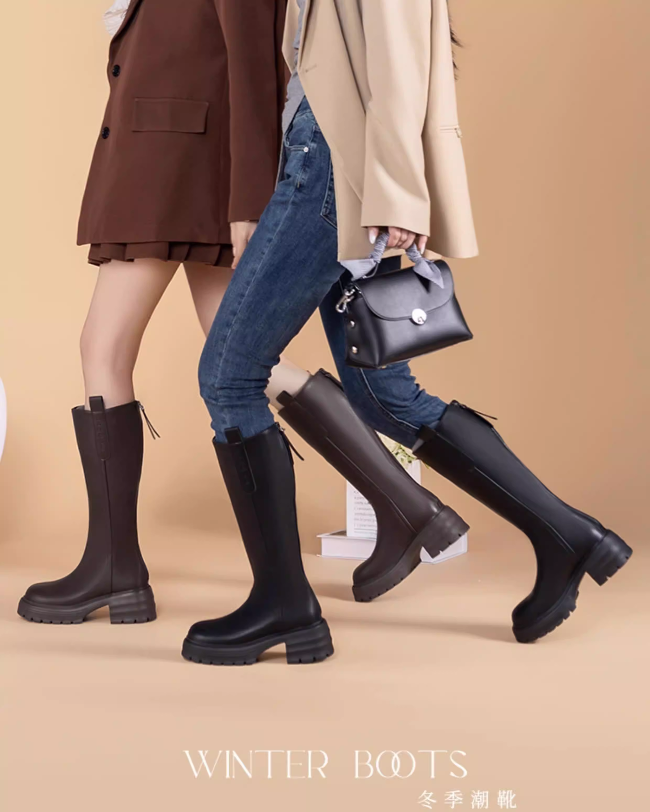 - Giày bốt đế dày Dadong dành cho nữ 2025, mẫu mới thu đông, bốt cao dành cho nữ cỡ lớn, bốt ống rộng, bốt dài dành cho nữ nhỏ nhắn.