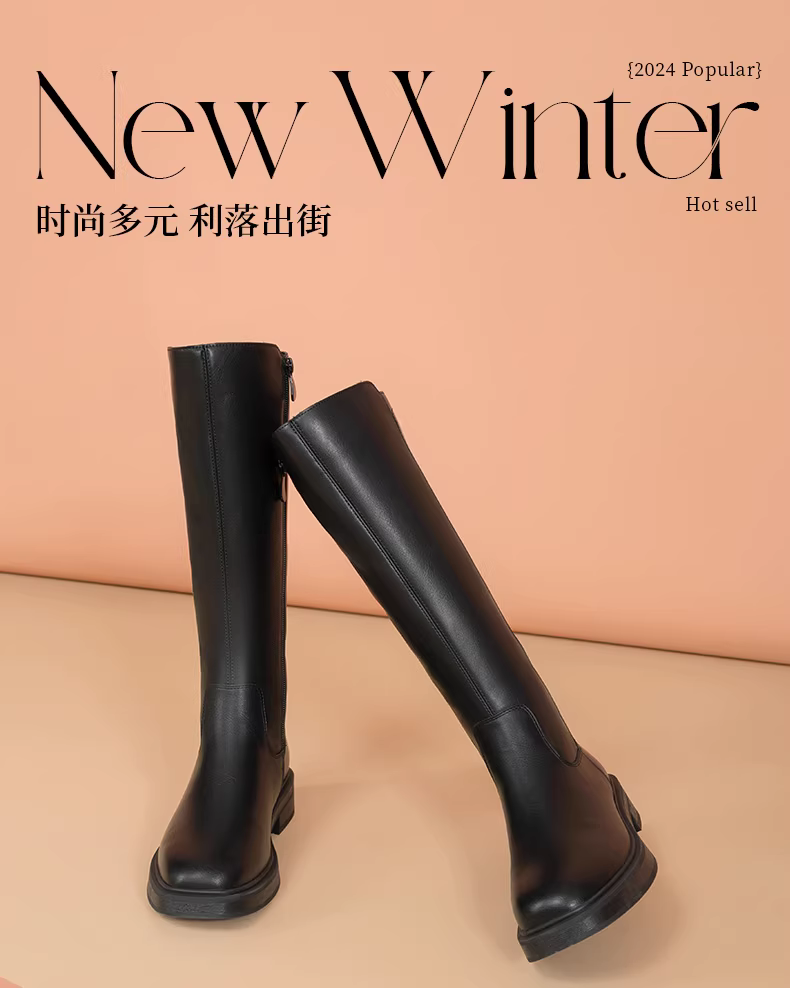 - Giày bốt đế dày Dadong dành cho nữ, giày nữ mới mùa thu đông 2025, bốt đi xe dài, bốt ôm dáng, bốt lót lông cừu màu đen.