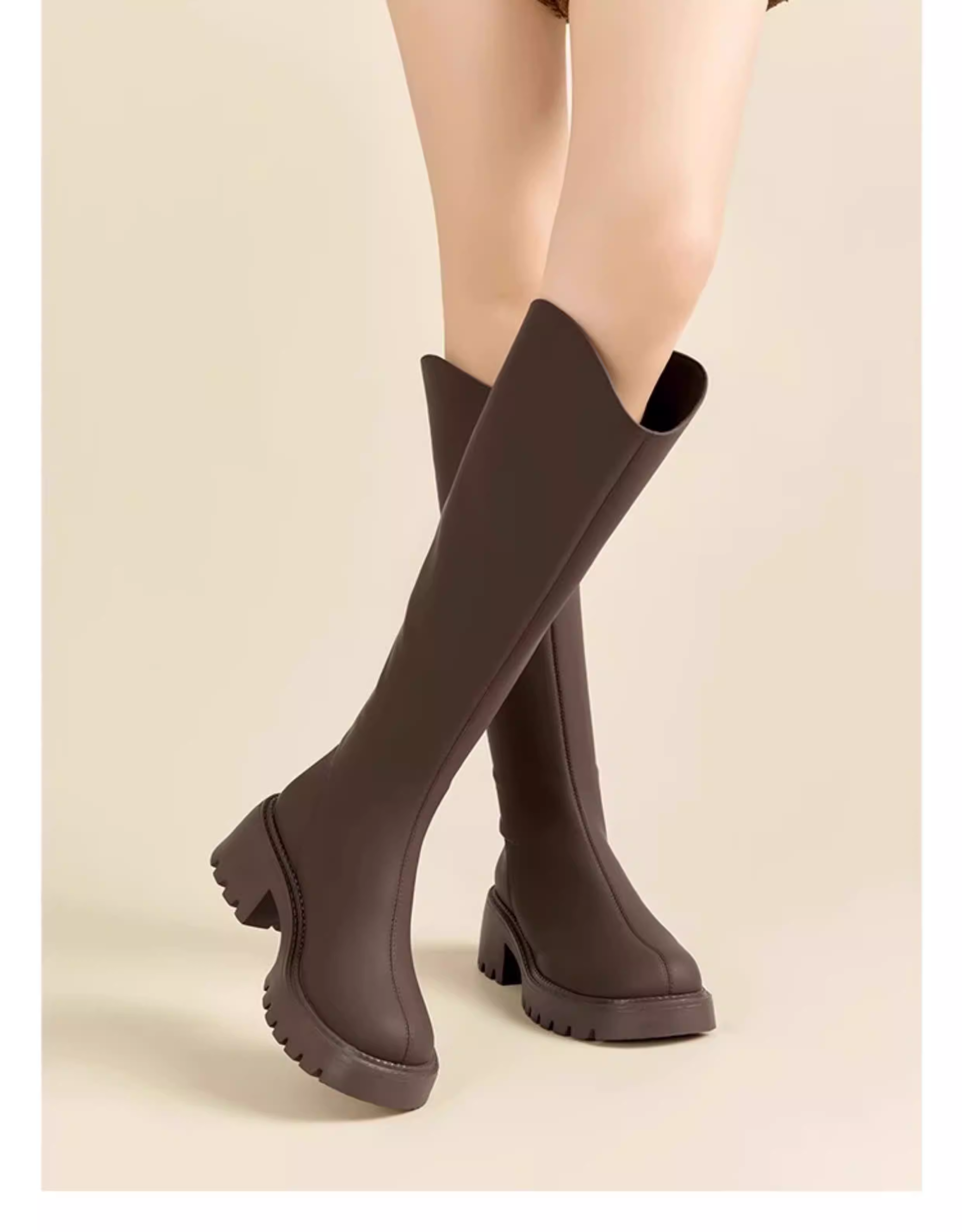- Giày bốt đế dày Dadong dành cho nữ, kiểu mới thu đông 2025, tăng chiều cao, kiểu dáng chữ V cổ cao màu nâu, giúp thon gọn chân.