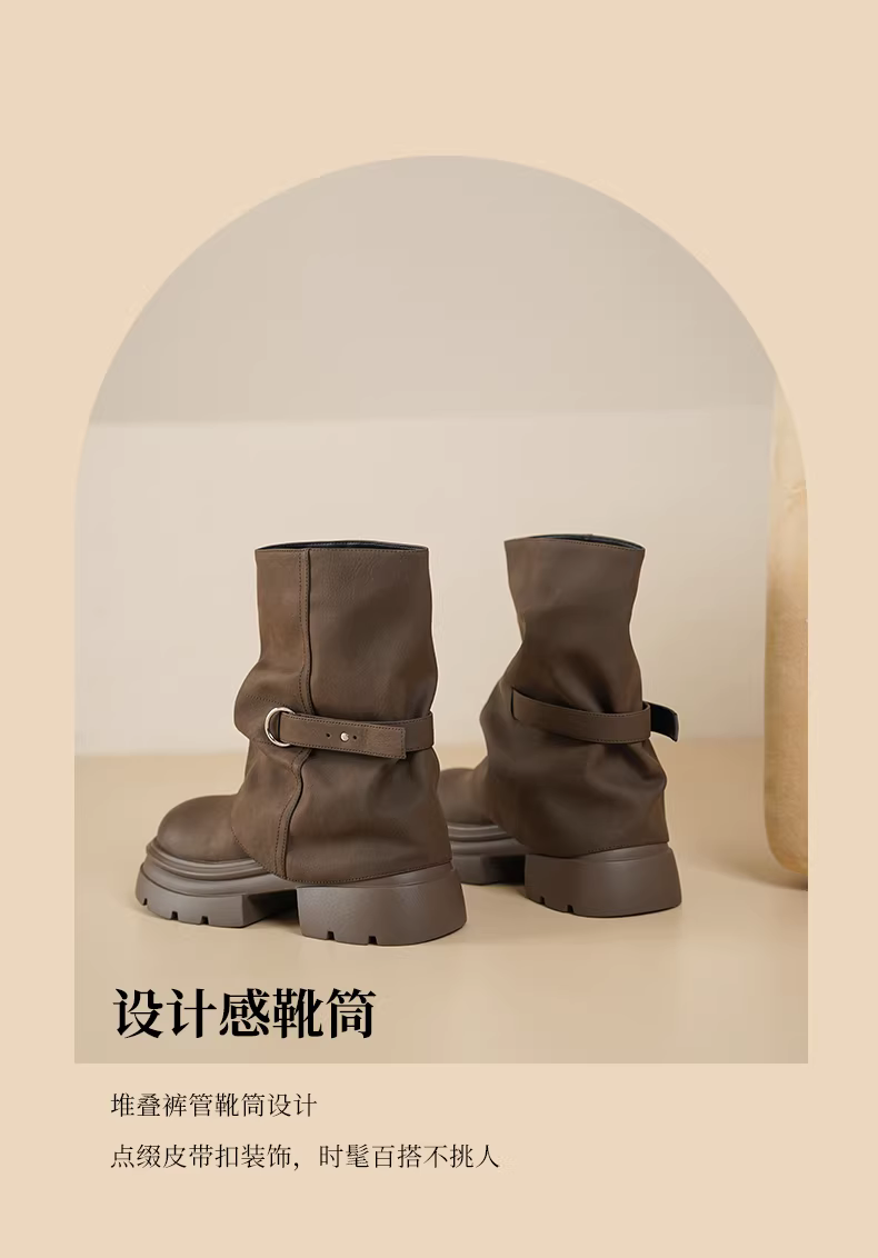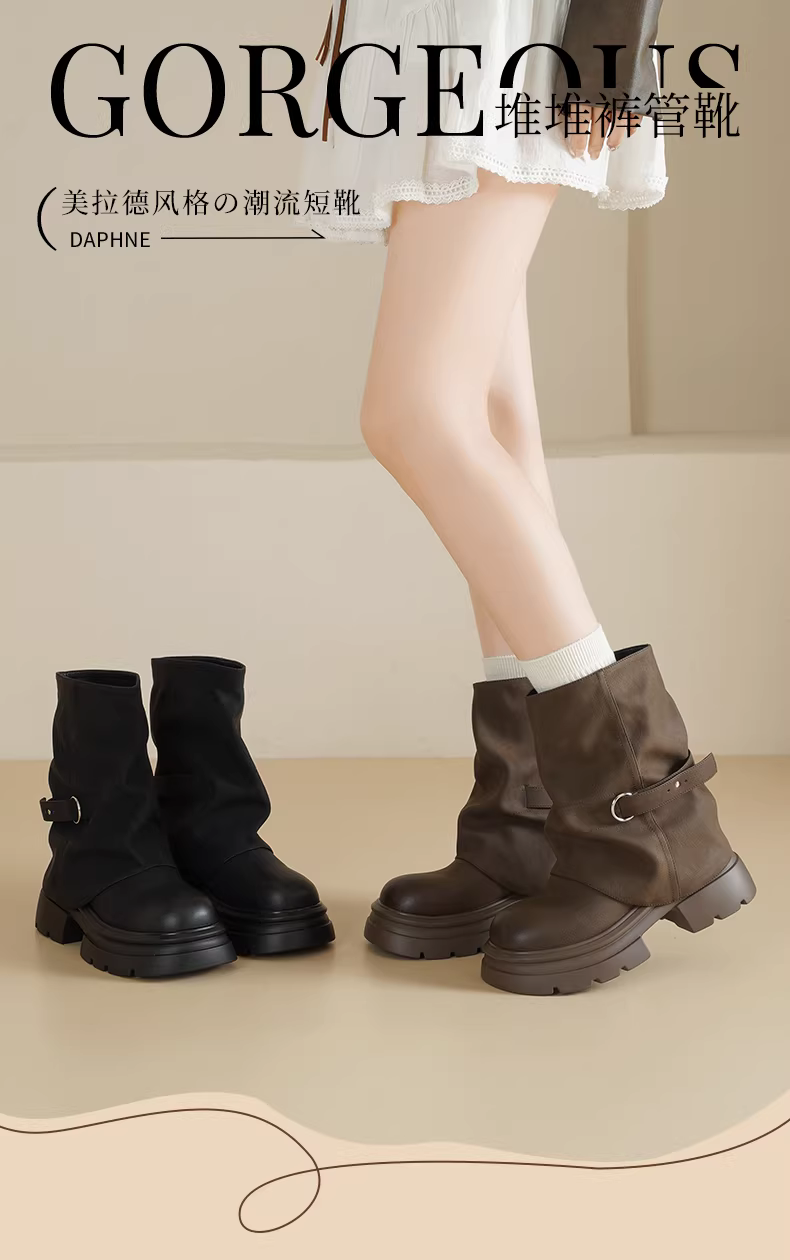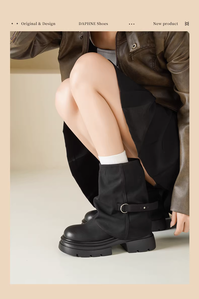 - Giày bốt đế dày Daphne dành cho nữ 2025 Giày bốt Martin màu nâu mùa đông mới Giày bốt Melard Giày bốt lót lông cừu dành cho nữ