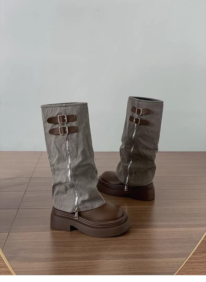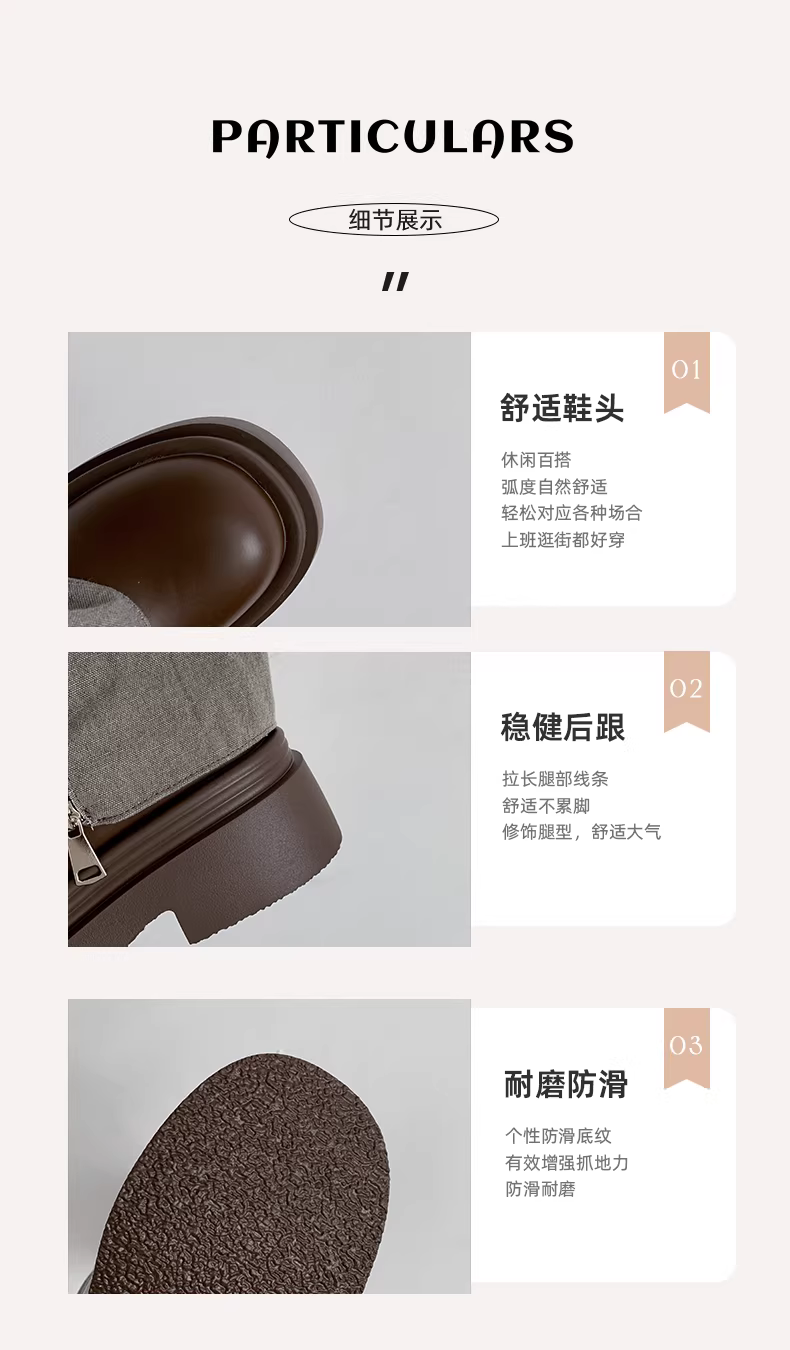 - Giày bốt đế dày kiểu Anh đen dành cho nữ, bốt dài, kiểu thu đông mới 2025, phối cùng chân váy, kiểu dáng tôn dáng và tăng chiều cao.