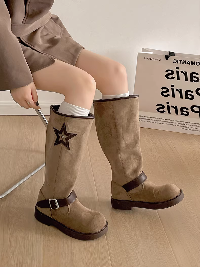 - Giày bốt đế dày kiểu cổ điển Meilade dành cho nữ, bốt cao cổ mùa thu đông 2025, đa năng, tăng chiều cao, dành cho phụ nữ nhỏ nhắn