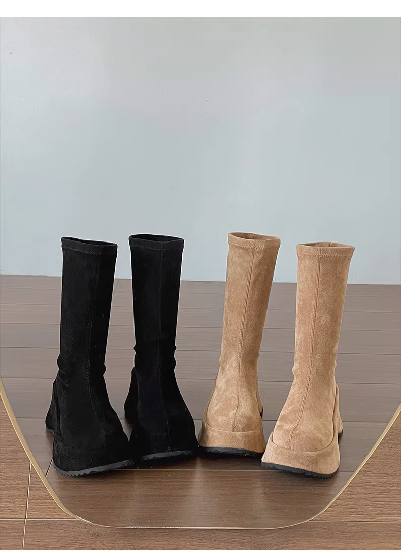 - Giày bốt đế dày kiểu retro dành cho nữ mùa thu đông 2025, tăng chiều cao, ôm dáng, chất liệu thun co giãn, dành cho người nhỏ nhắn