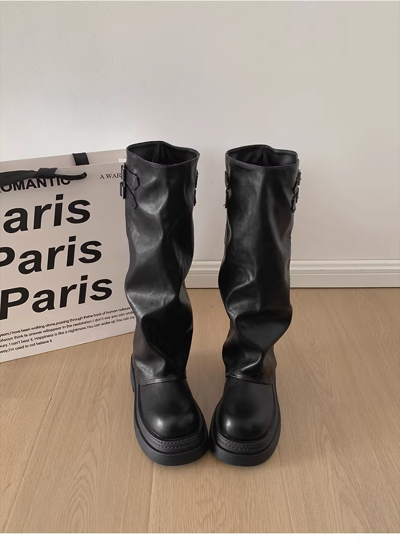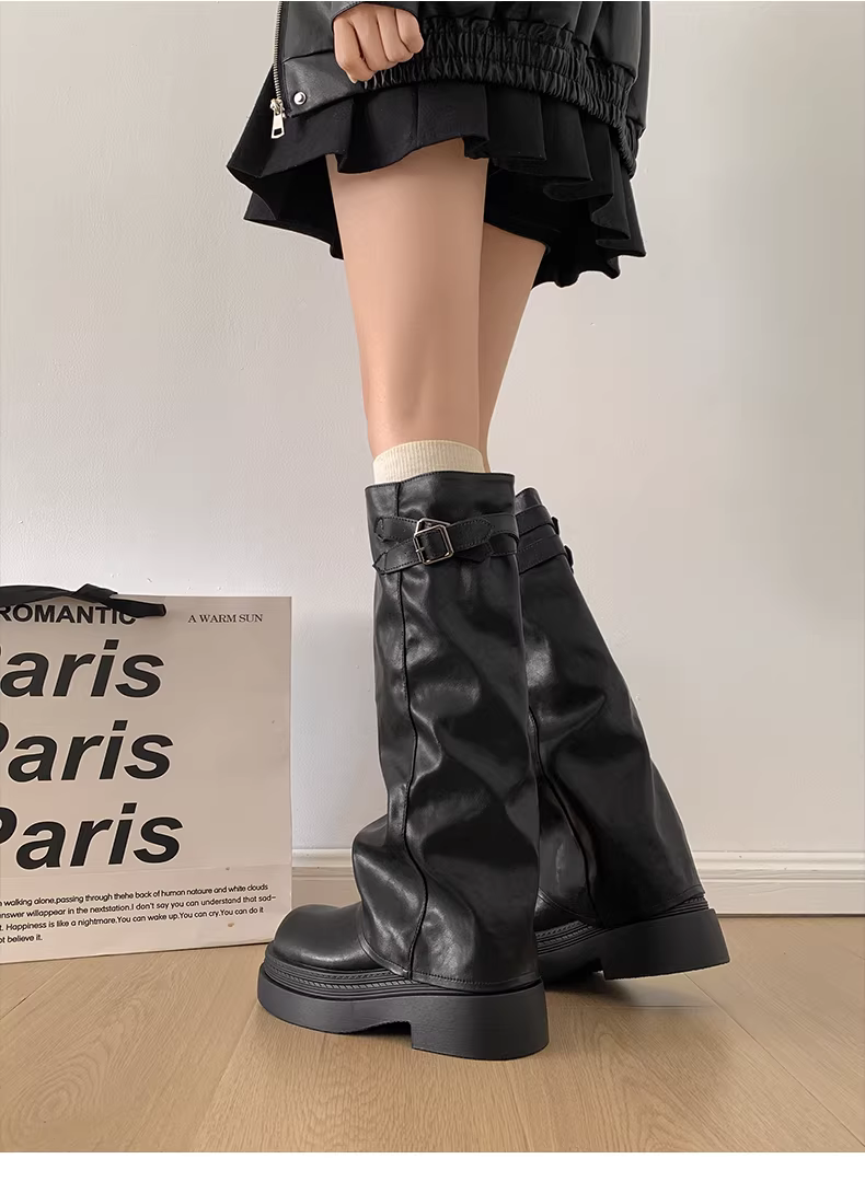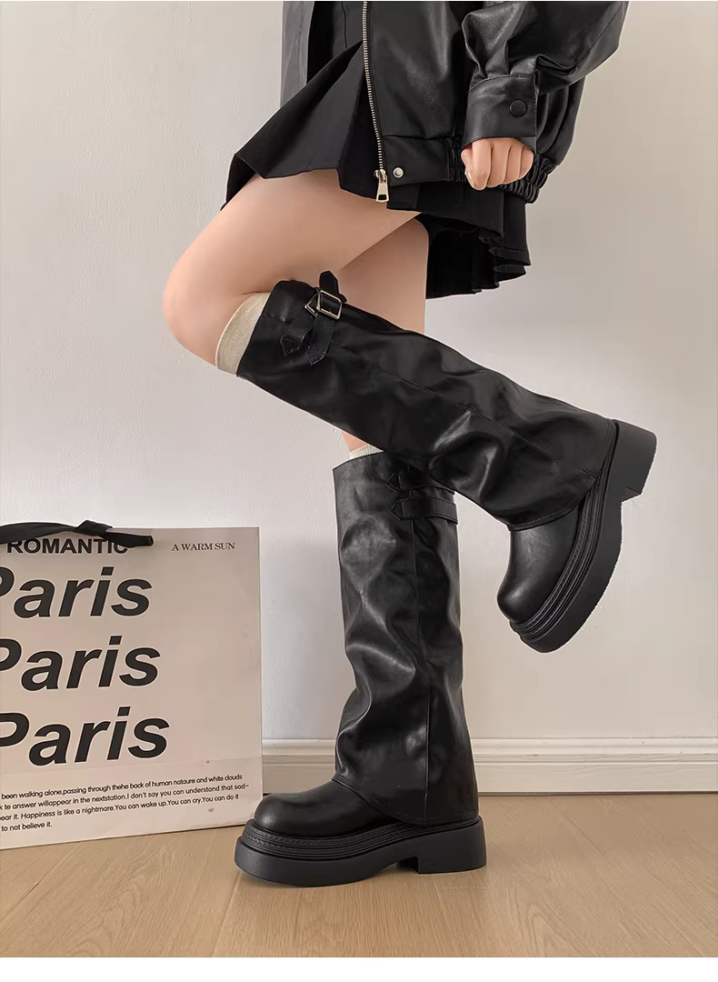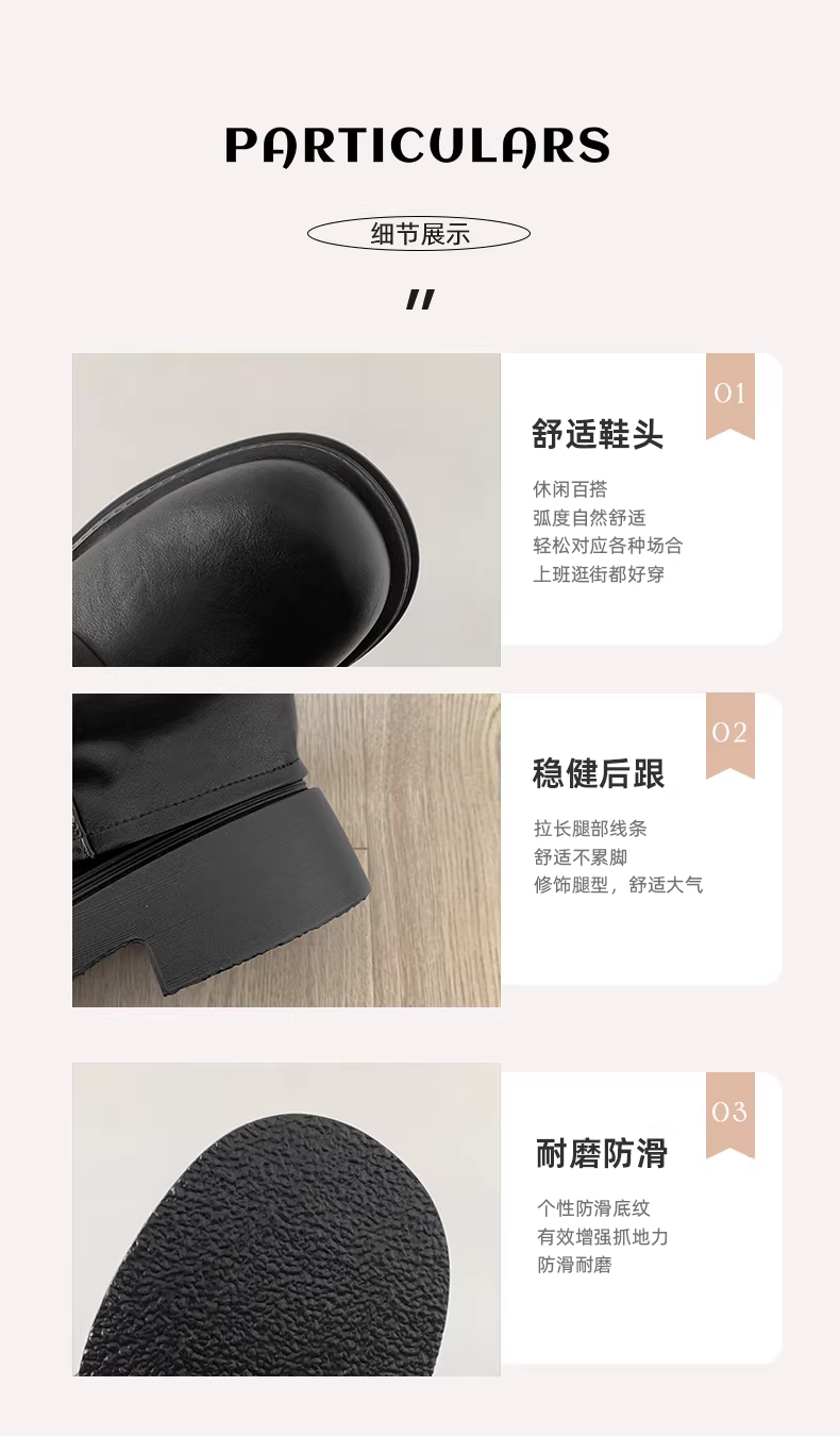 - Giày bốt đế dày màu đen phong cách retro Nam Trung Quốc dành cho nữ, kiểu dáng mới Thu Đông 2025, phối cùng chân váy và giúp thon gọn chân