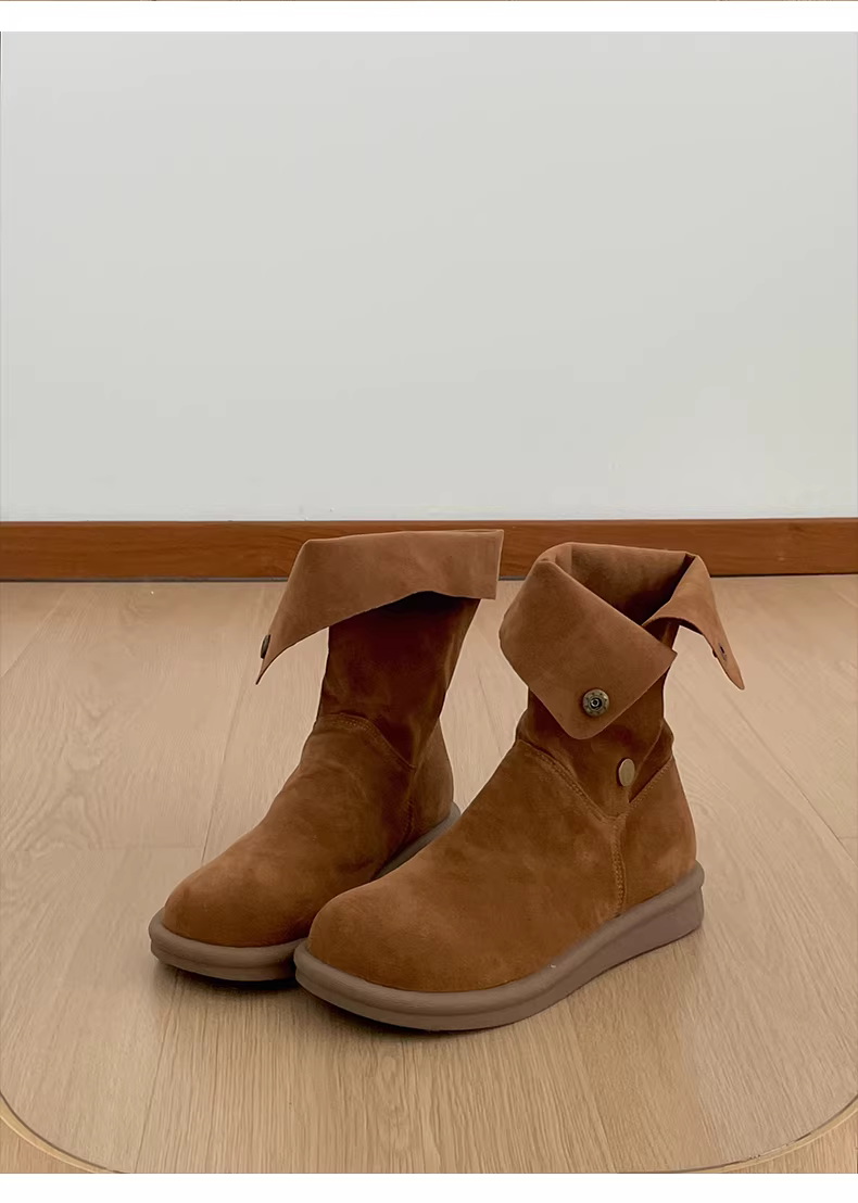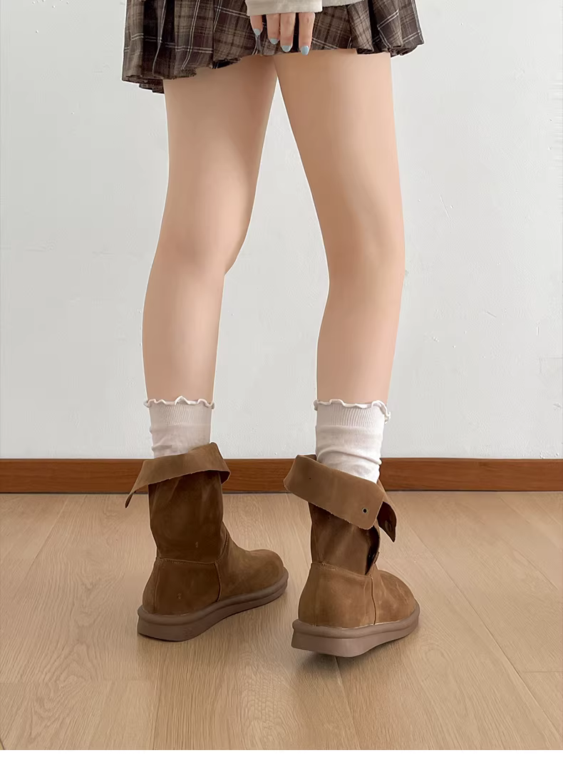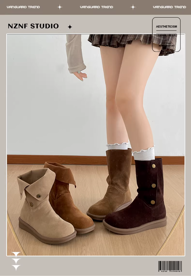 - Giày bốt đế dày màu kaki retro Nanzai Nanguan dành cho nữ, kiểu dáng thu đông mới 2025, phối cùng váy để trông thon gọn hơn, bốt ngắn Melard.