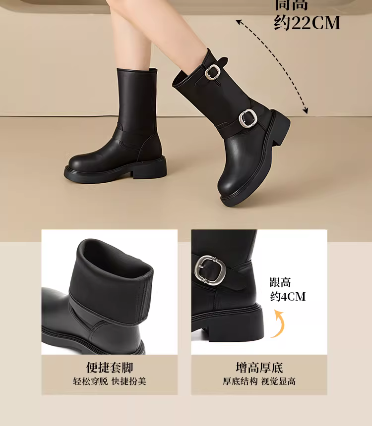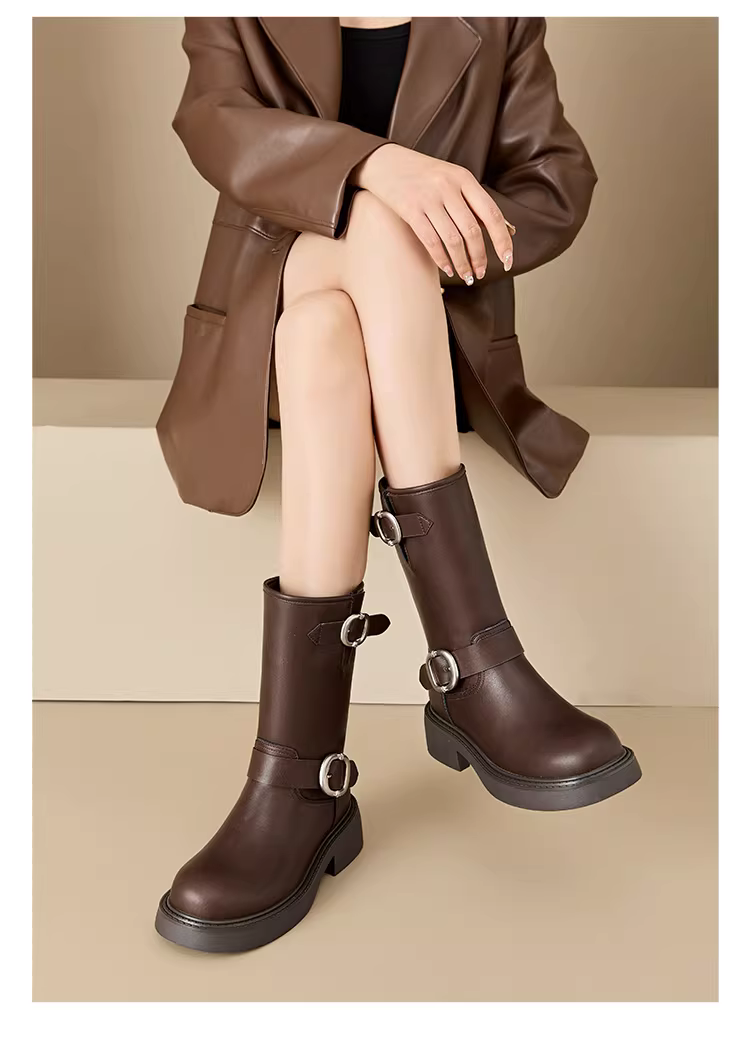 - Giày bốt đế dày phong cách Dadongju dành cho nữ, bốt mùa thu đông mới 2025, bốt cao đến giữa bắp chân, bốt Martin cổ điển, bốt biker.