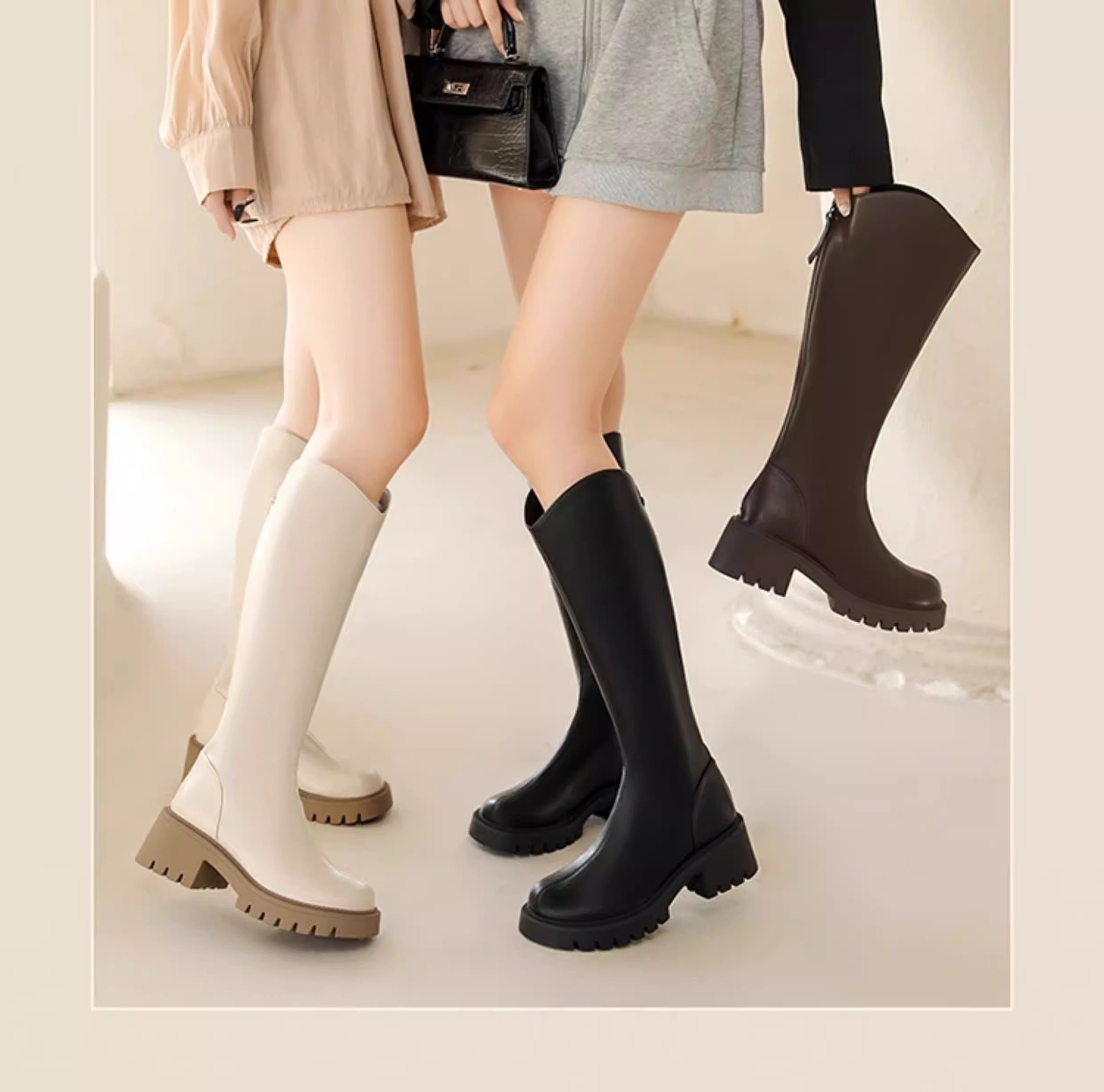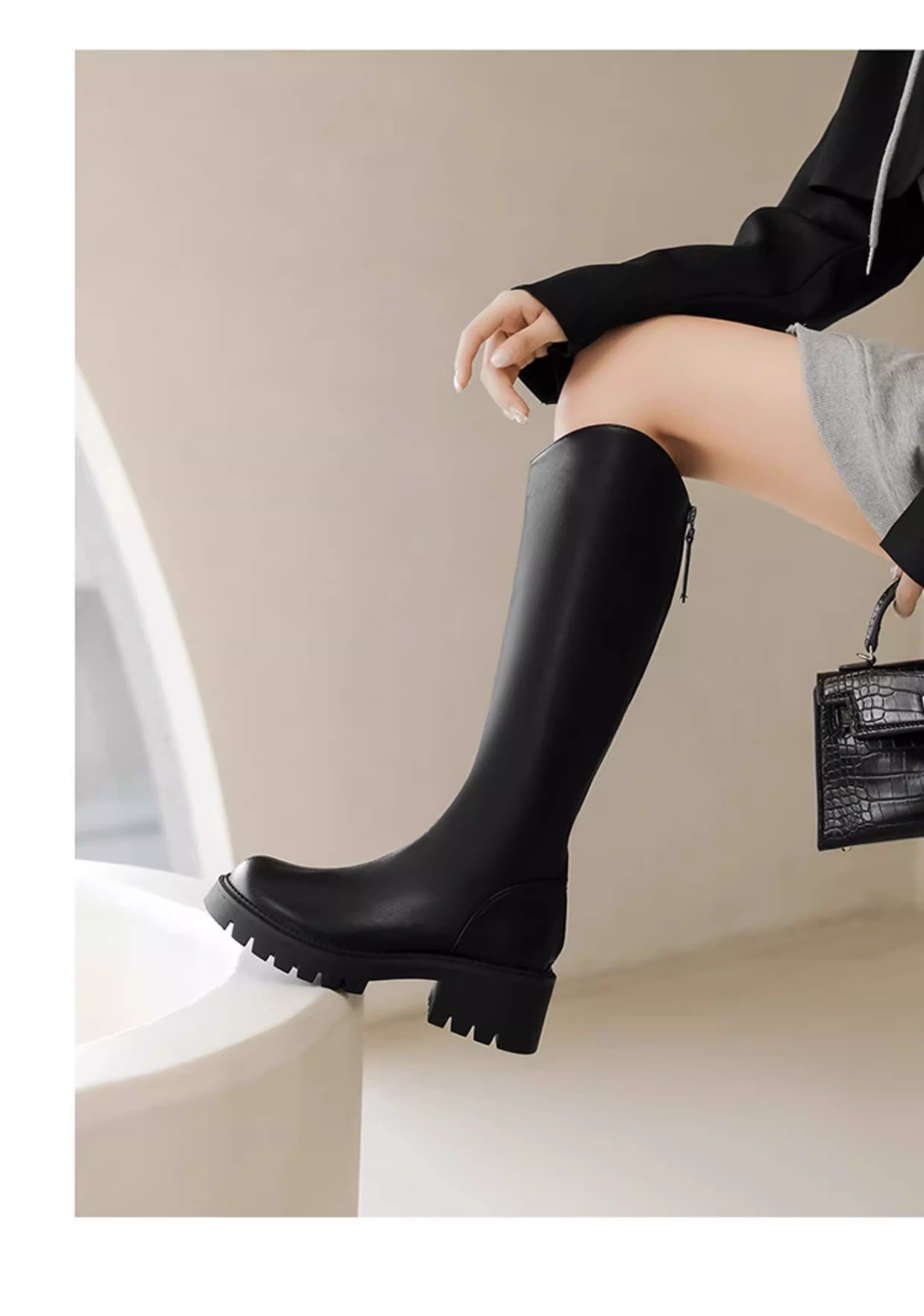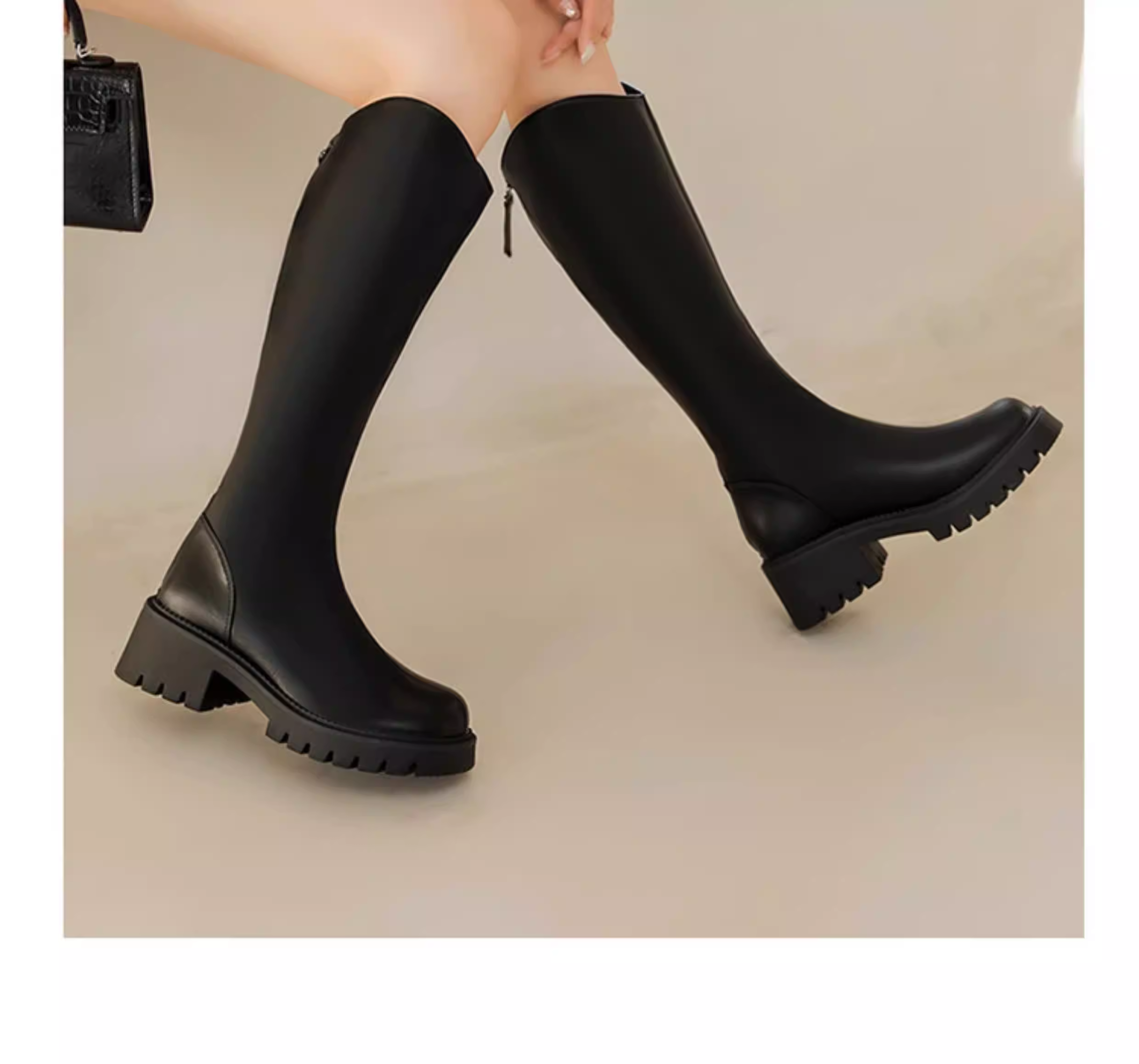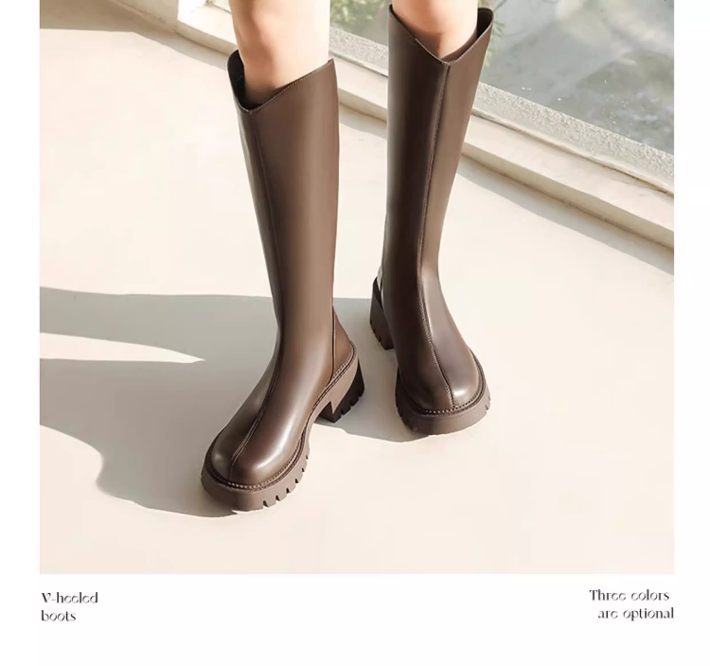 - Giày bốt đen dài Dadong dành cho nữ 2025, mẫu mới thu đông, đế dày, bốt cao cổ dành cho nữ nhỏ nhắn, bốt cổ chữ V, bốt cưỡi ngựa nữ