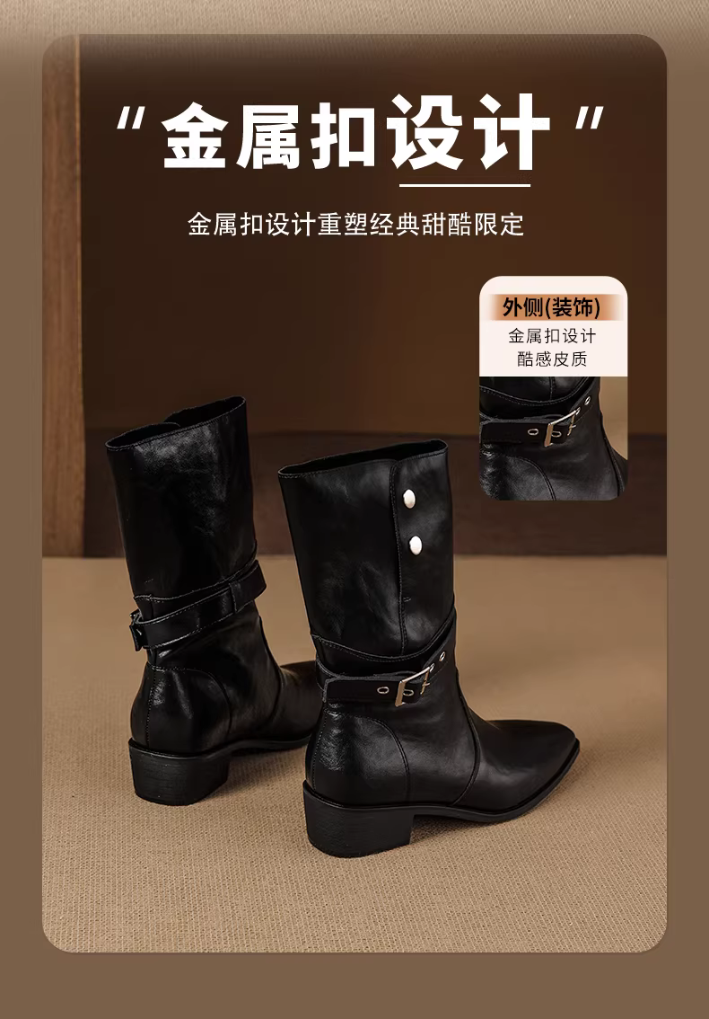 - Giày bốt đen Daphne nữ, bốt dài mùa thu 2025 kiểu mới, gấp gọn được, kiểu cổ điển, mũi nhọn, chất liệu da, bốt cao đến giữa bắp chân, kiểu bốt cưỡi ngựa