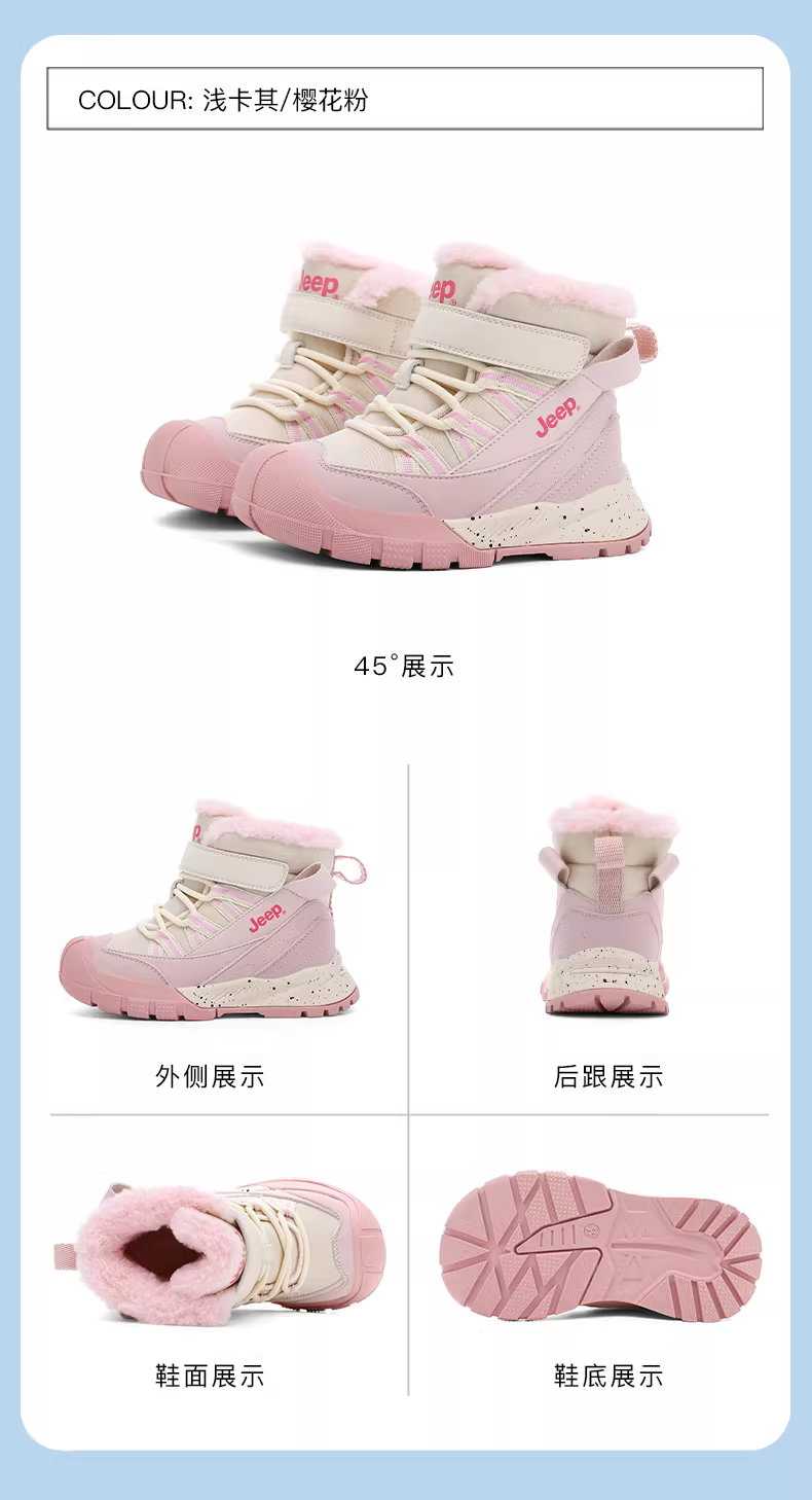 - Giày bốt đi tuyết cho bé trai Jeep mùa đông lót lông cừu giữ ấm giày cotton bé trai 2025 mới chống thấm nước chống trơn trượt giày tuyết trẻ em
