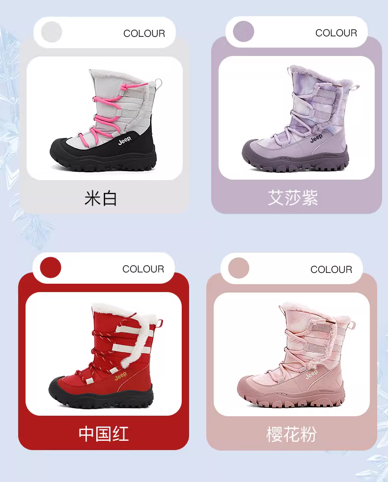 - Giày bốt đi tuyết dành cho bé gái Jeep, màu đỏ tươi, phiên bản giới hạn Năm Kỷ Ngựa, giày cotton Đông Bắc, giày cotton cỡ lớn lót lông cừu và dày dặn dành cho trẻ em mùa đông.