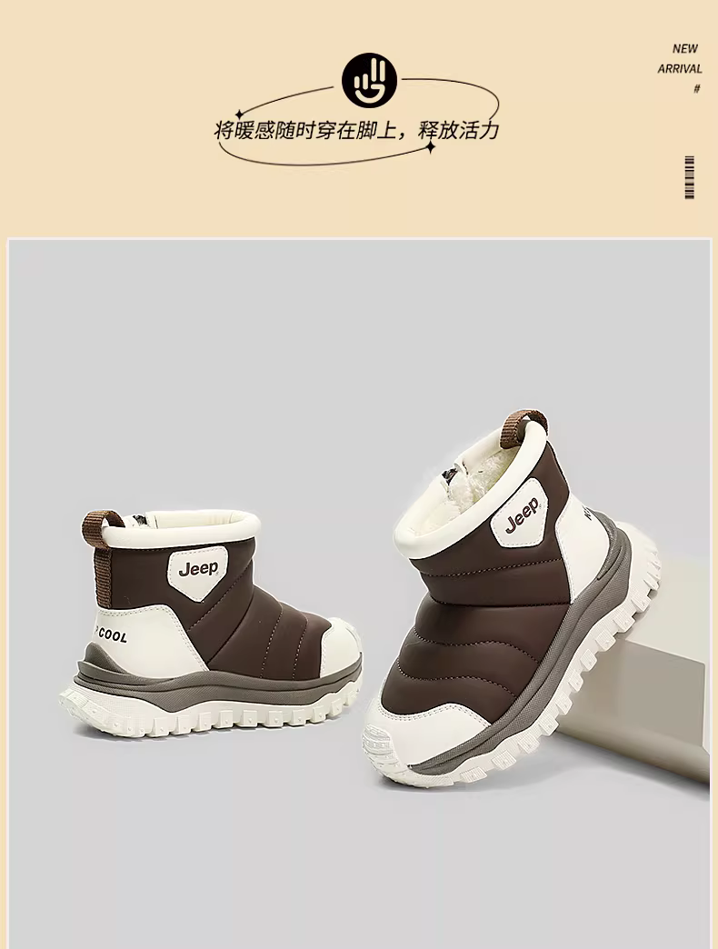 Giày bốt đi tuyết dành cho trẻ em của hãng Jeep có lớp lót lông cừu, dày và không thấm nước, giày lông, mẫu 2024, giày cotton cỡ lớn dành cho bé gái và bé trai mùa đông.