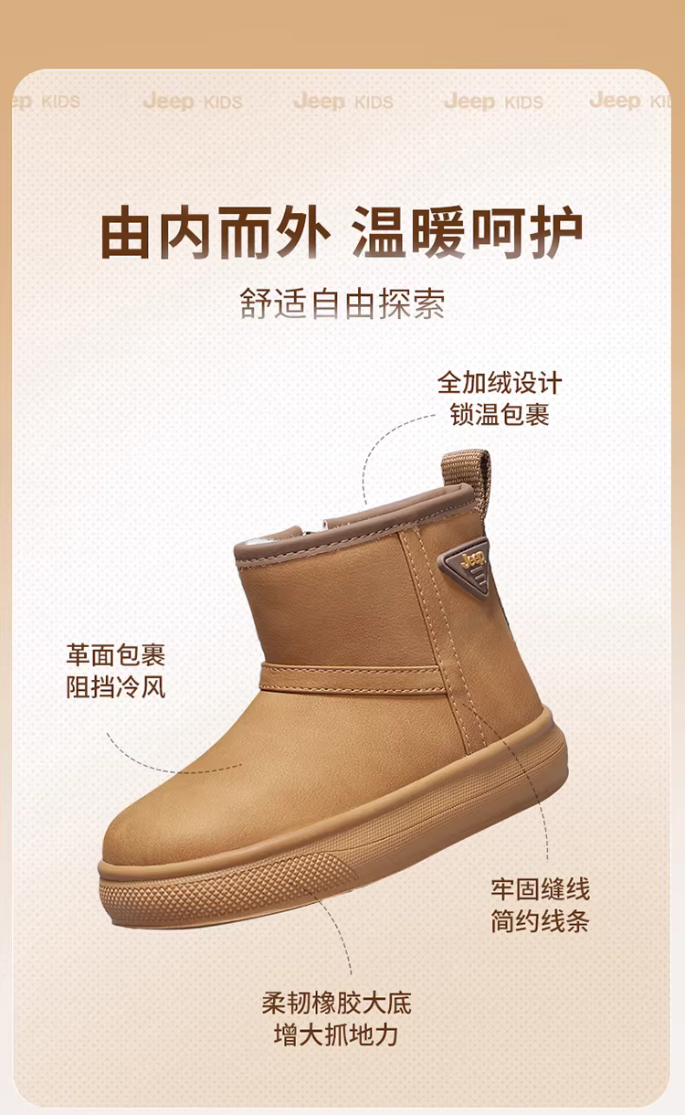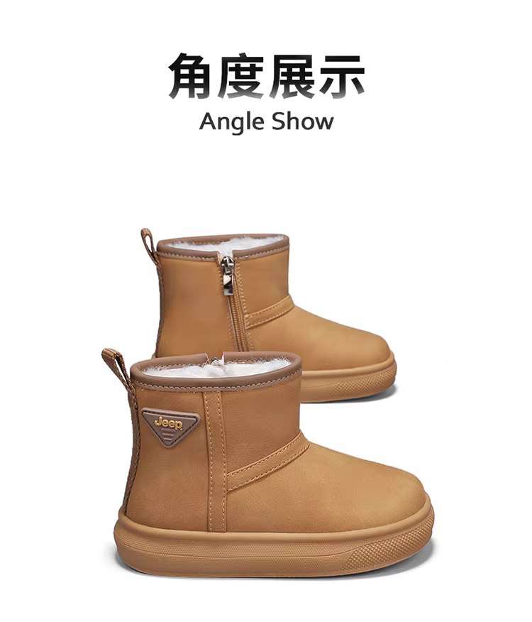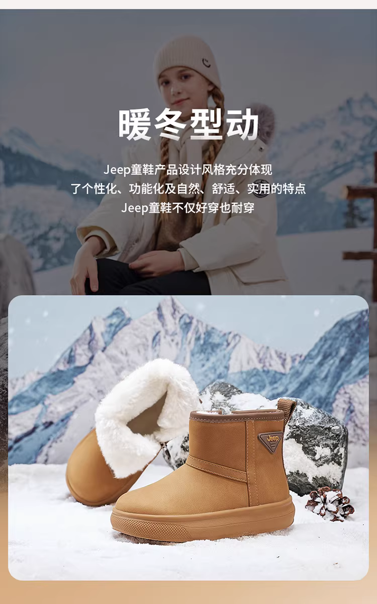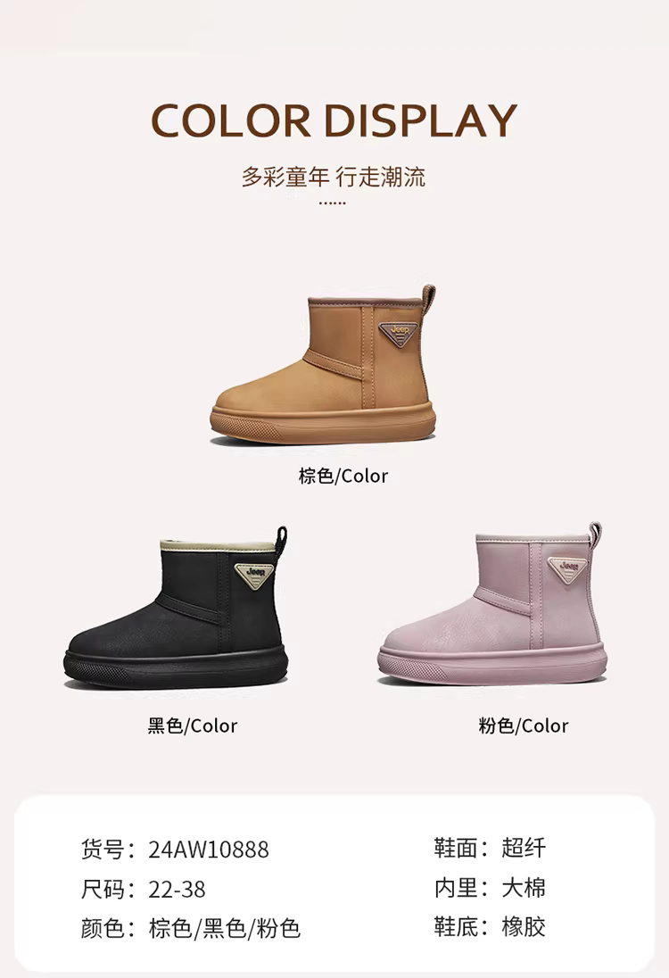 - Giày bốt đi tuyết dành cho trẻ em Jeep dành cho bé gái, giày bốt cotton dày và lót lông cừu, giày cotton cỡ lớn màu hồng chống trượt và chống mài mòn mùa đông 2025 dành cho bé gái