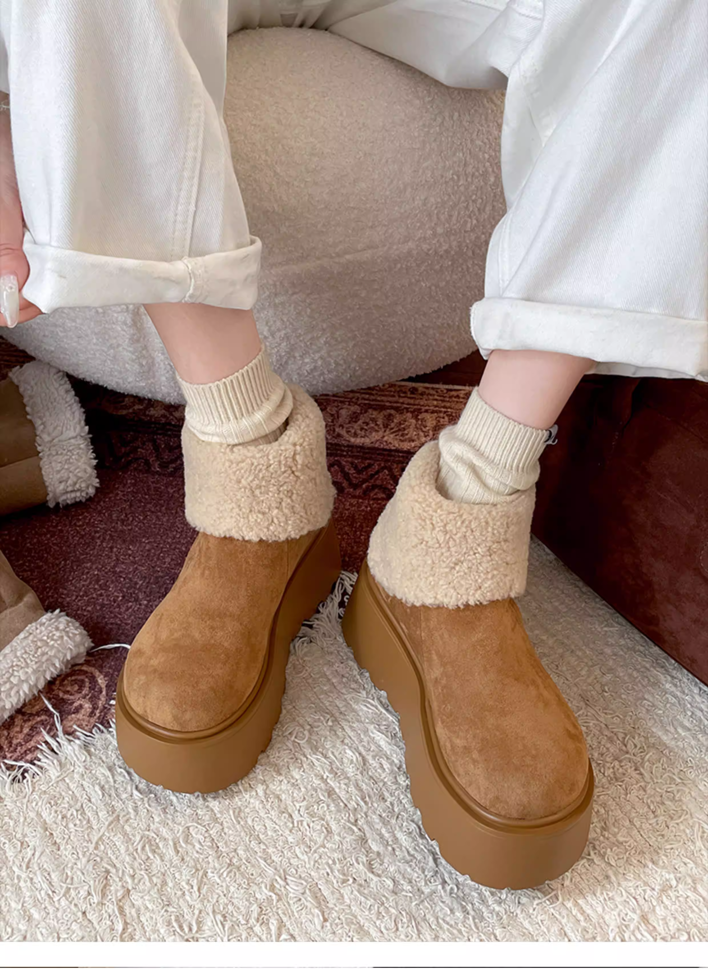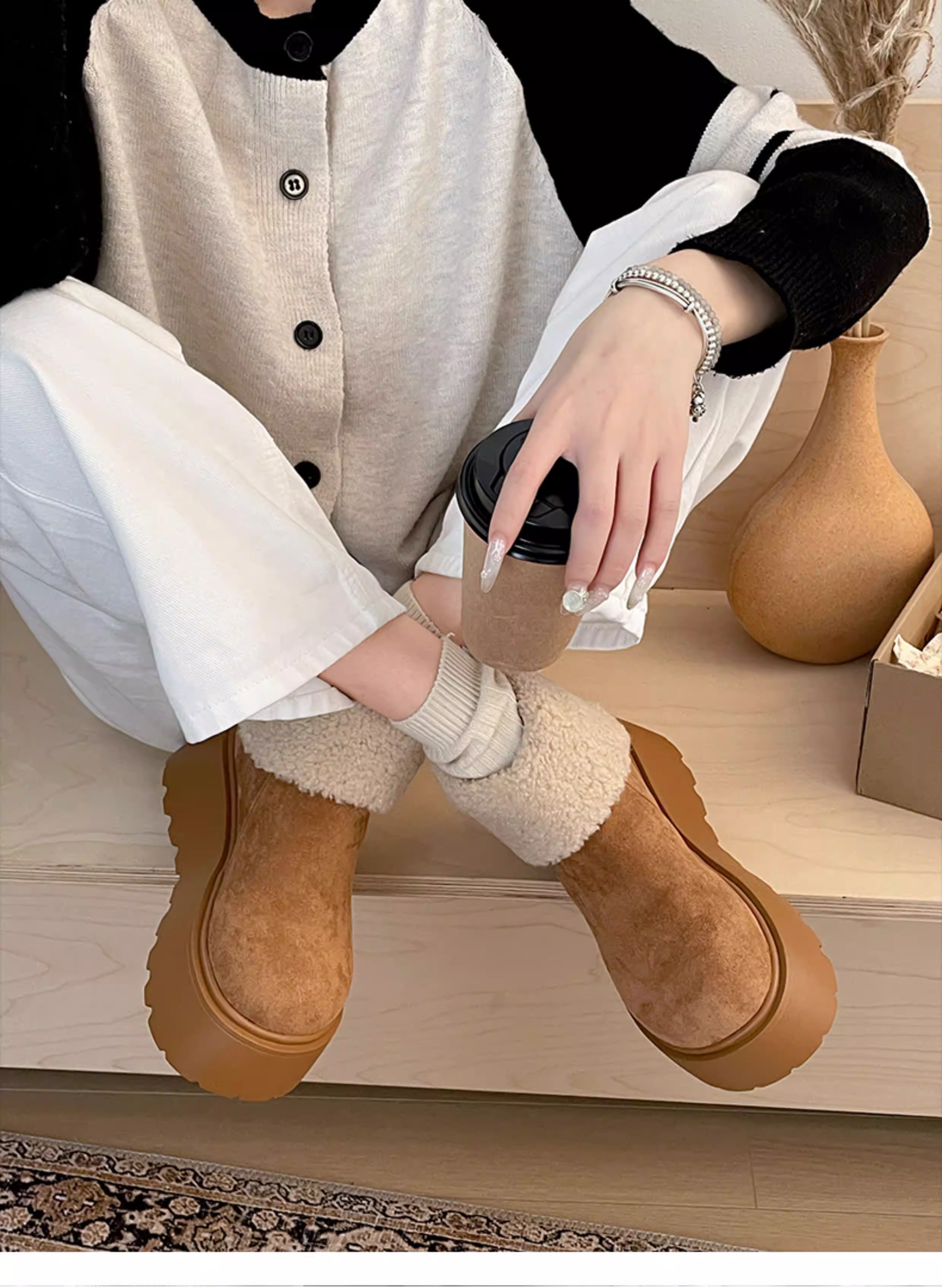 - Giày bốt đi tuyết đế dày Birkenstock tăng chiều cao Nanzai Nanfang dành cho nữ 2025 Giày cotton dày dặn lót lông cừu mùa đông mới.
