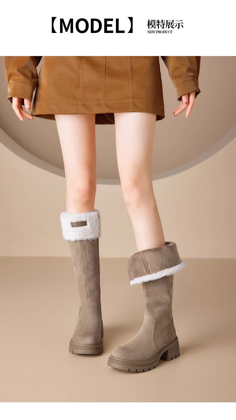 - Giày bốt đi tuyết đế dày Dadong, ống dài, mẫu mới mùa đông 2025, lót lông cừu giữ ấm, bốt cao cổ, bốt lông dài.
