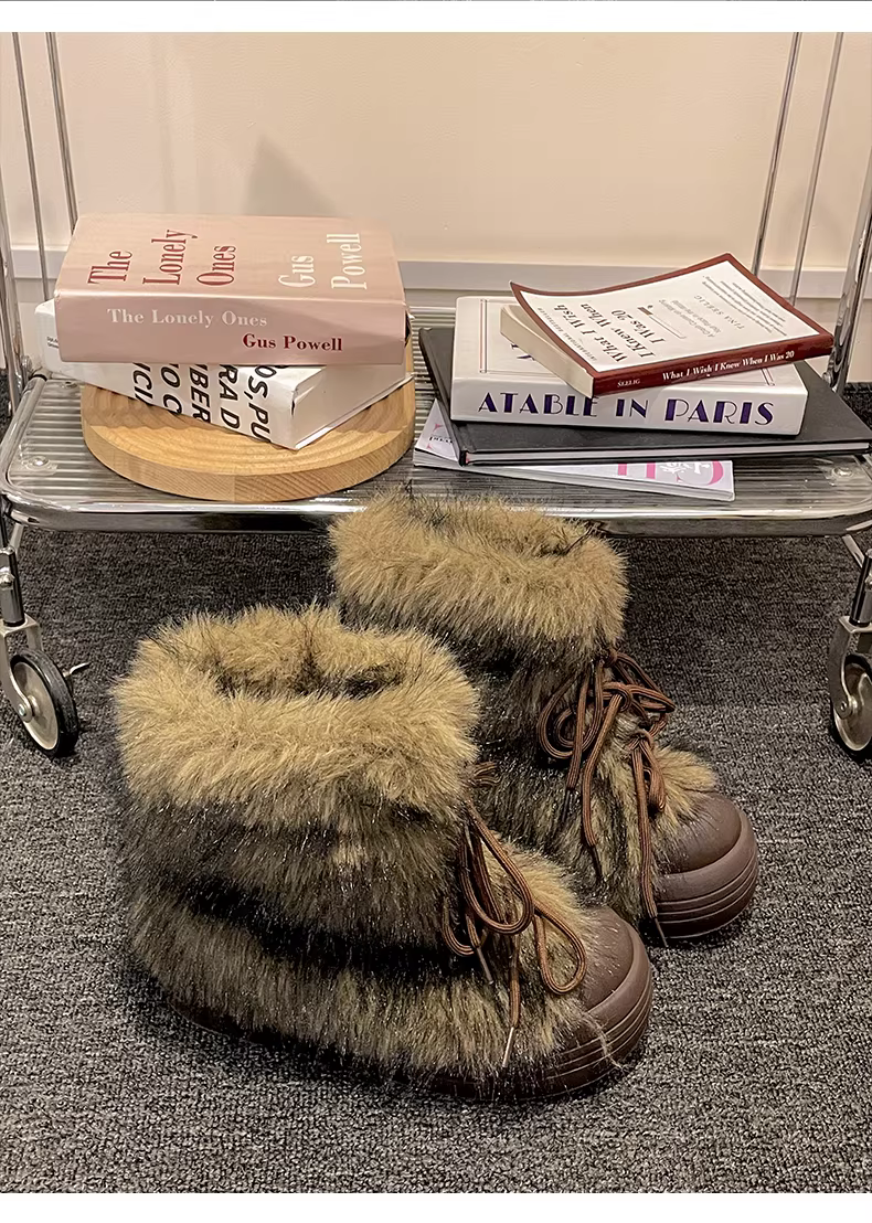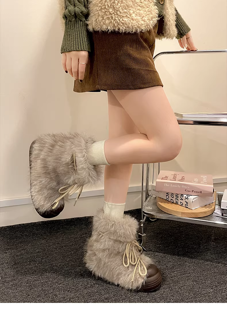 - Giày bốt đi tuyết đế dày lót lông cừu trắng chống trơn trượt dành cho nữ, giày cotton giữ ấm mùa đông mới năm 2025.
