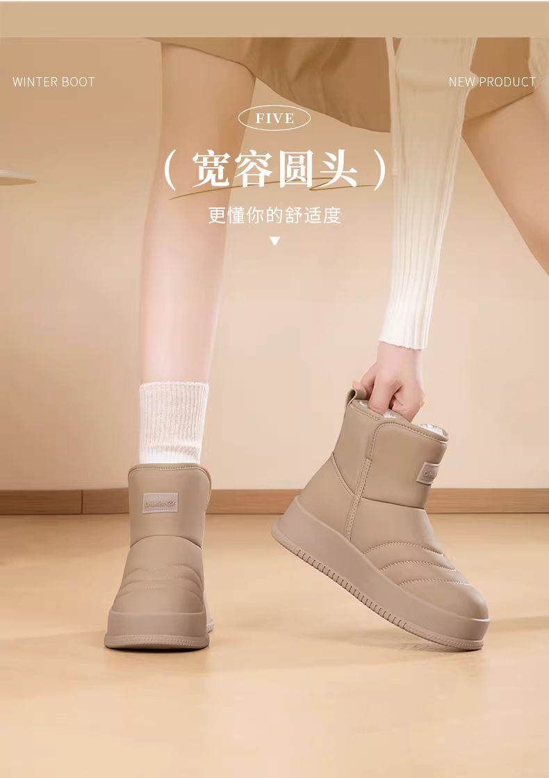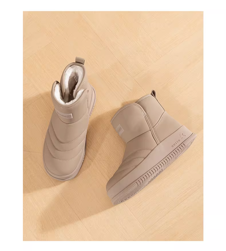 - Giày bốt đi tuyết đế dày màu đen Dadong dành cho nữ, giày lười mùa đông mới 2025, tích hợp da và lông thú, lót lông cừu, giày cotton ấm áp.