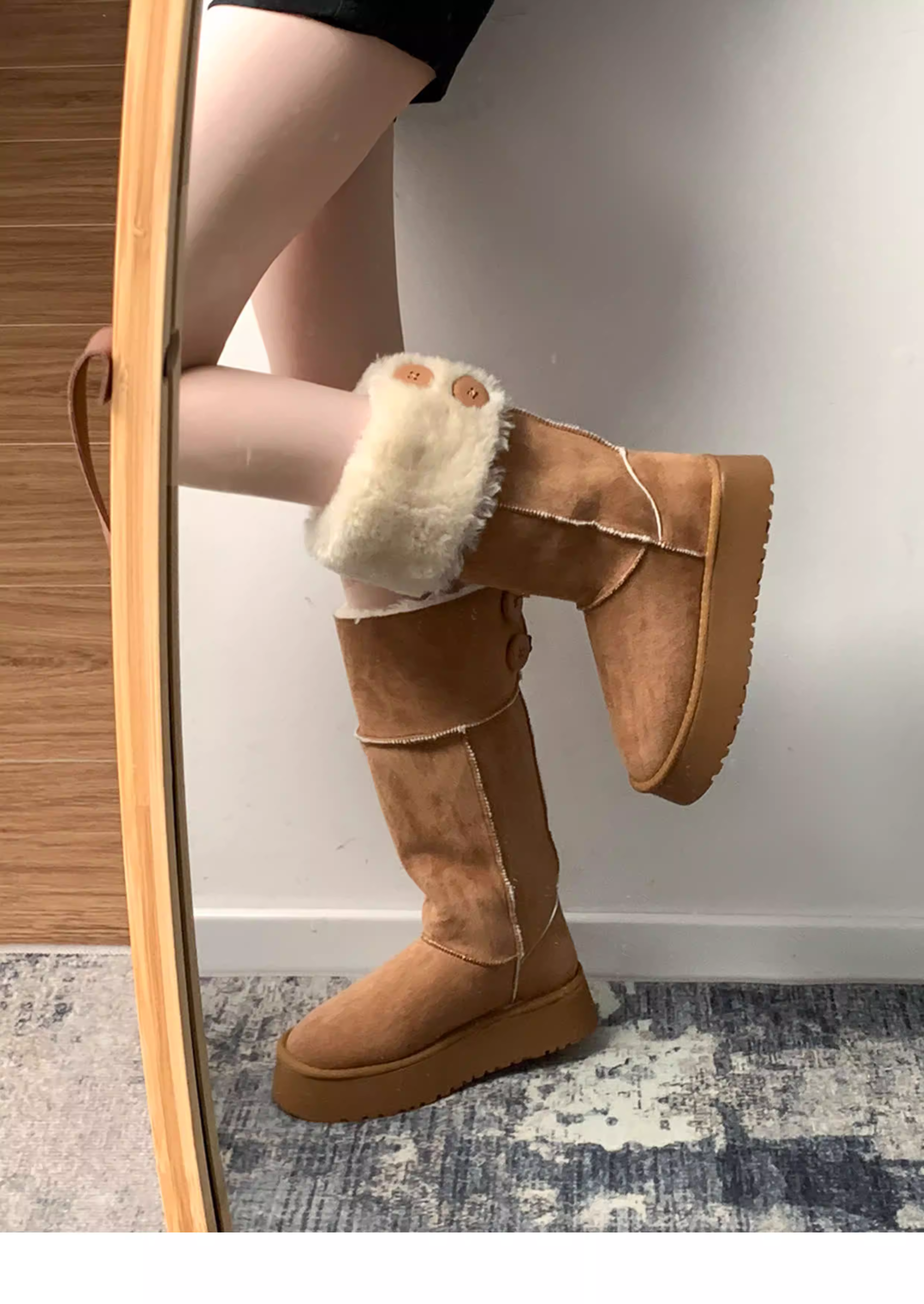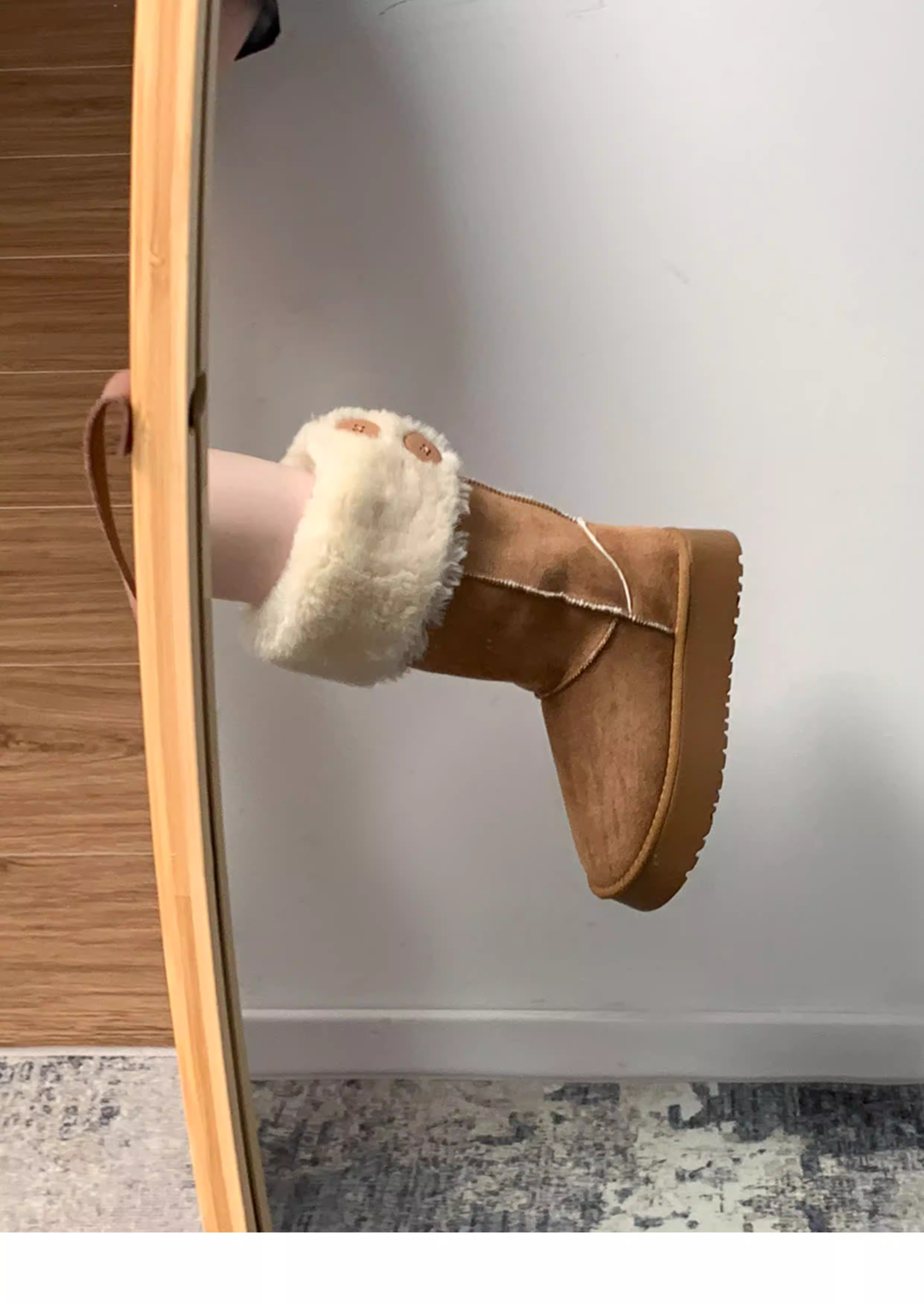 - Giày bốt đi tuyết đế dày màu nâu Nanzai Nanfang dành cho nữ, giày bốt cotton lót lông mùa đông mới 2025, giày cotton ấm áp.