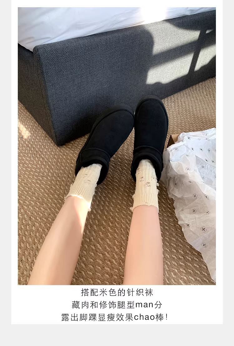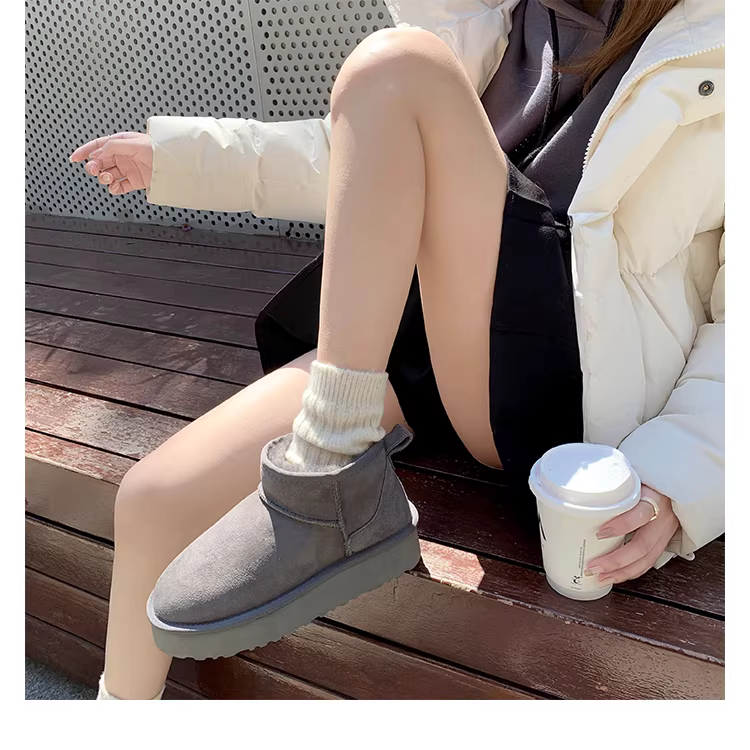 - Giày bốt đi tuyết, giày bốt cotton dày dặn lót lông cừu mùa đông dành cho nữ, giày bốt ngắn bằng da thật thời trang có khóa dán, đế dày.