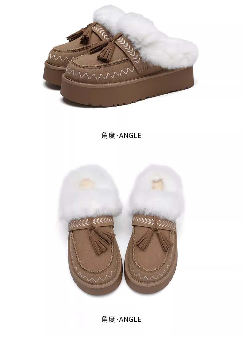 - Giày bốt đi tuyết lót lông Dadong dành cho nữ, giày lông dày đế dày mùa đông mới 2025, kiểu nửa dép, giày cotton ấm áp.