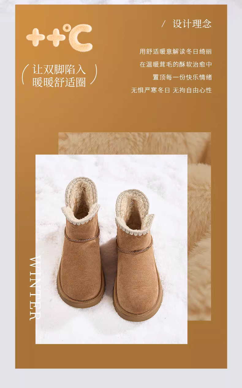 - Giày bốt đi tuyết lót lông Dadong dành cho nữ, mùa đông 2025, giày cotton lót lông cừu dày đế dày giữ ấm, bốt ngắn đi tuyết.