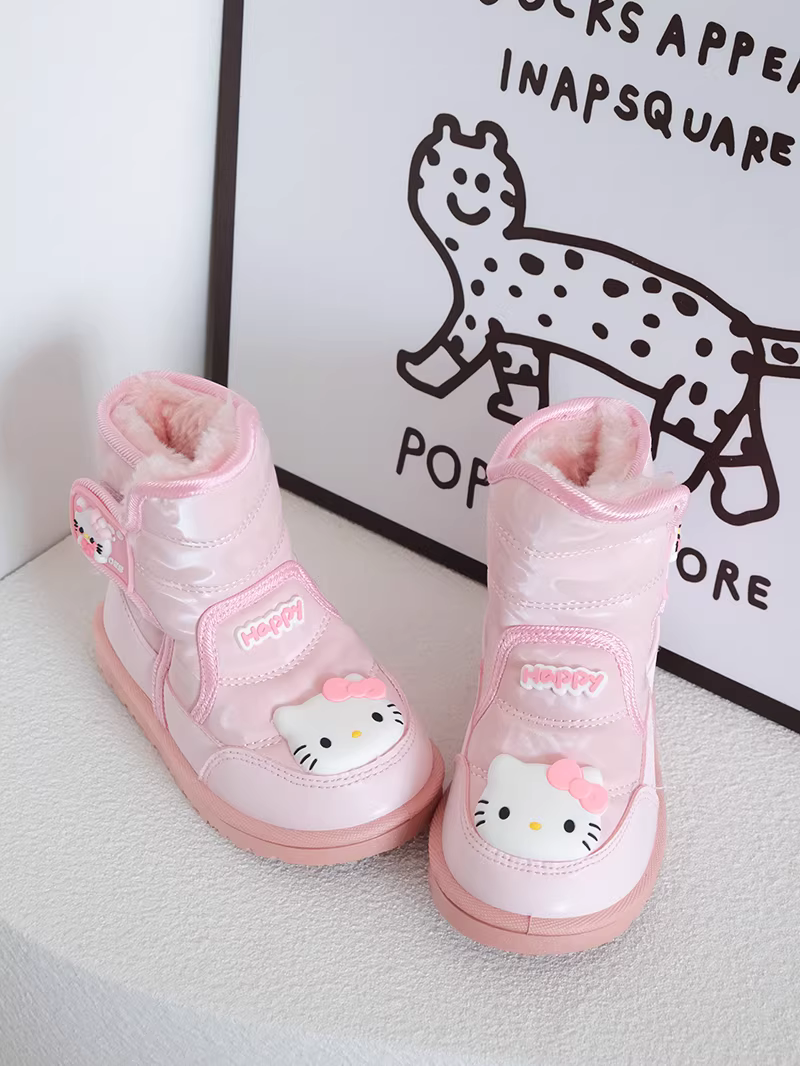 - Giày bốt đi tuyết màu hồng dành cho bé gái có lớp lót lông cừu, dày dặn cho mùa đông, chống lạnh ngoài trời và ấm áp, bề mặt bằng da trẻ em, giày cotton cực dày dành cho trẻ em.