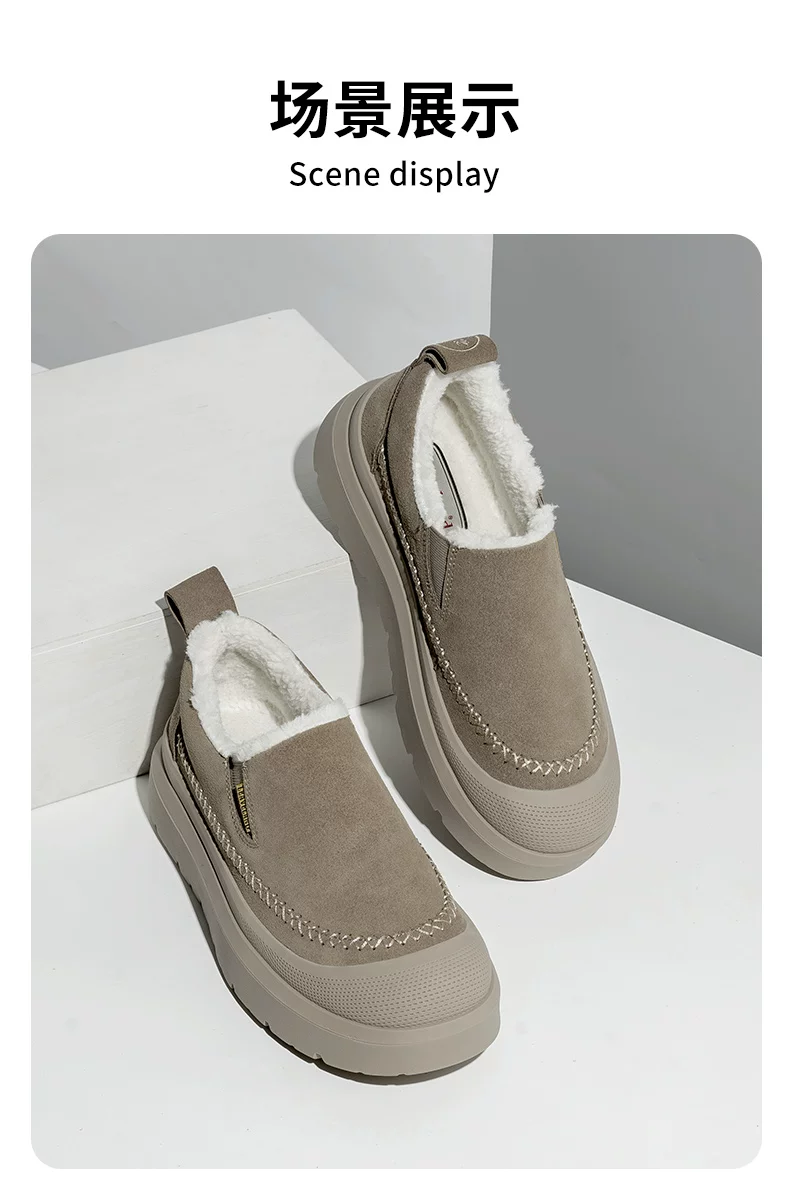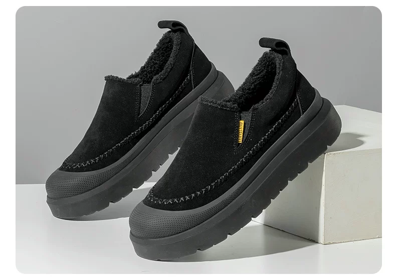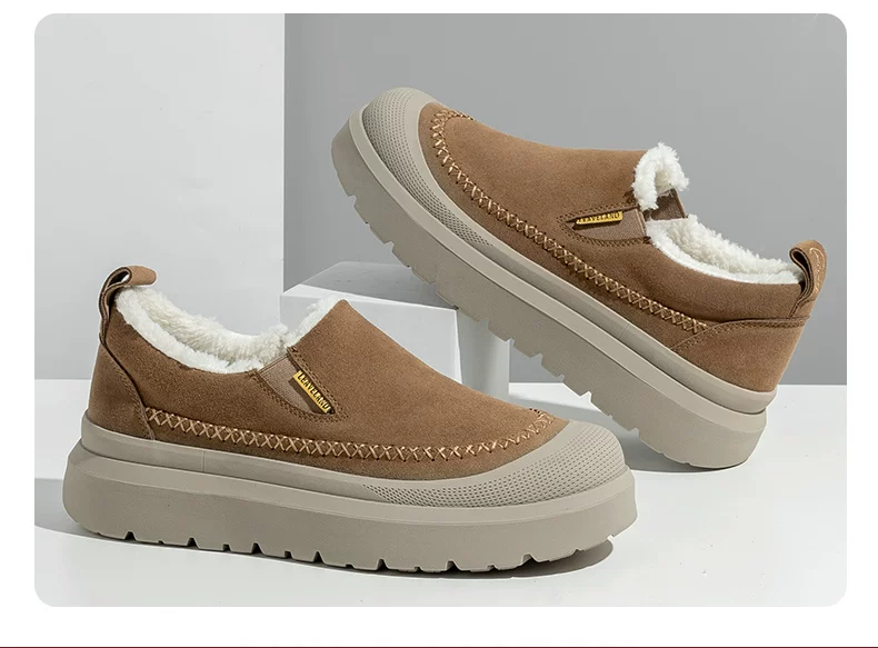 Giày bốt đi tuyết mùa đông nam Maple Leaf, Giày cotton ấm lót lông cừu cho nam, Giày lười đế dày tăng chiều cao cho nữ, Giày kiểu dáng thấp cổ hợp thời trang