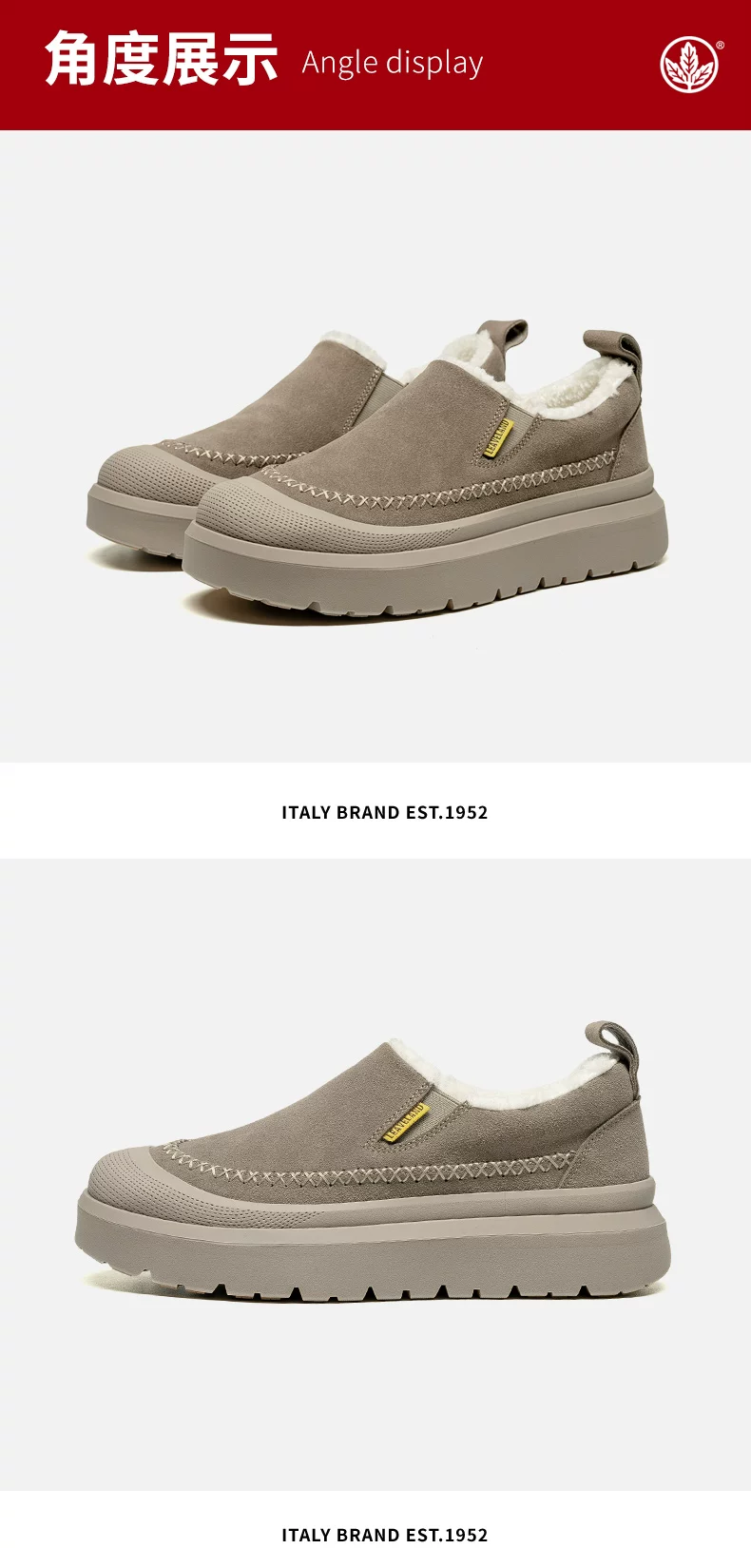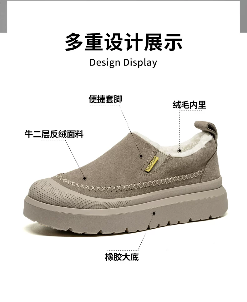 - Giày bốt đi tuyết mùa đông nam Maple Leaf, Giày cotton ấm lót lông cừu cho nam, Giày lười đế dày tăng chiều cao cho nữ, Giày kiểu dáng thấp cổ hợp thời trang