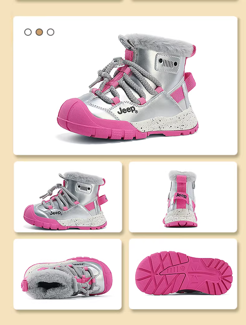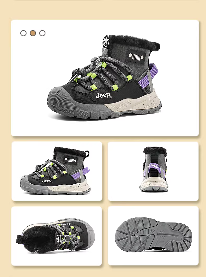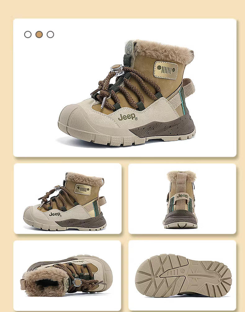 - Giày bốt đi tuyết trẻ em Jeep dành cho bé gái, giày cotton cỡ lớn, giày lót lông cừu mùa đông mới 2025, ấm áp, chống thấm nước, chống trơn trượt cho bé trai