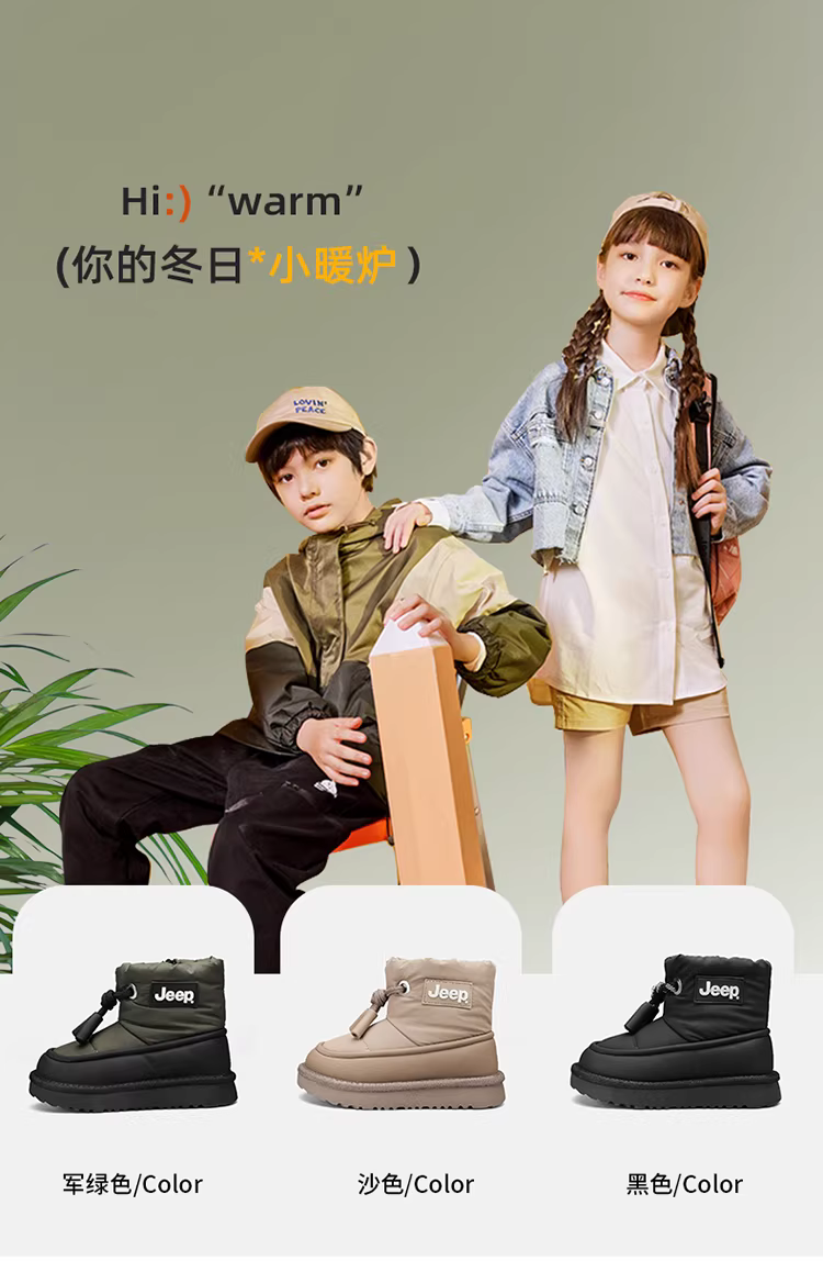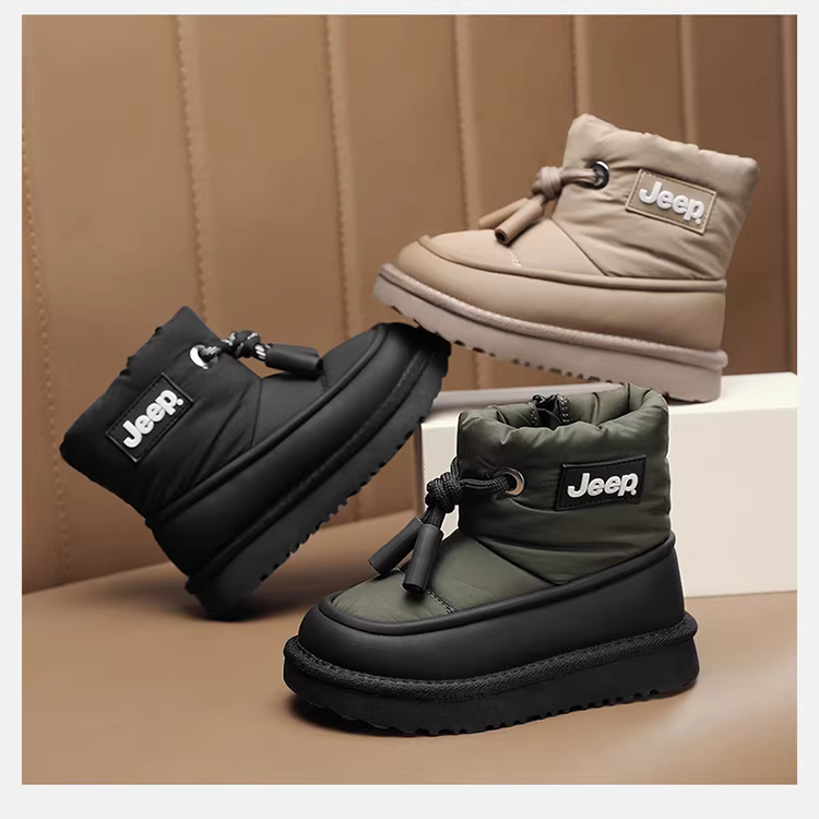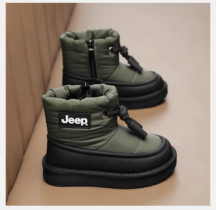 - Giày bốt đi tuyết trẻ em Jeep dành cho bé trai và bé gái, bốt ngắn chống thấm nước cho mùa thu đông 2024, kiểu dáng mới, mặt da Đông Bắc có lớp lót lông cừu giữ ấm.