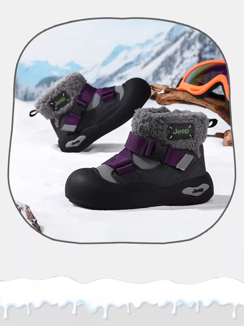 - Giày bốt đi tuyết trẻ em Jeep mùa đông, giày bông lót lông cừu cho bé trai, giày bông cỡ lớn 2025 mới, giữ ấm, chống thấm nước, chống trơn trượt, giày bốt bông cho bé gái