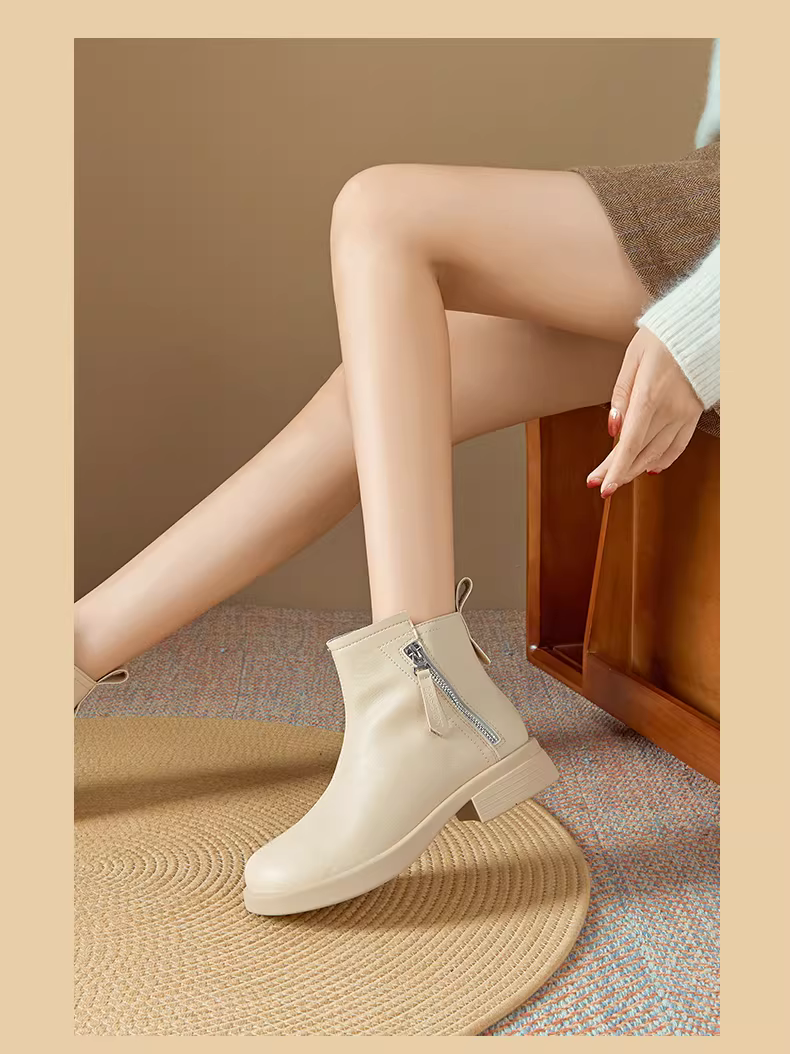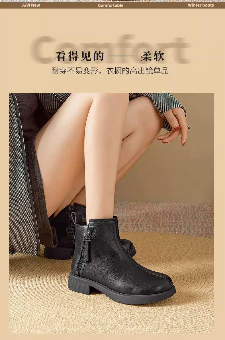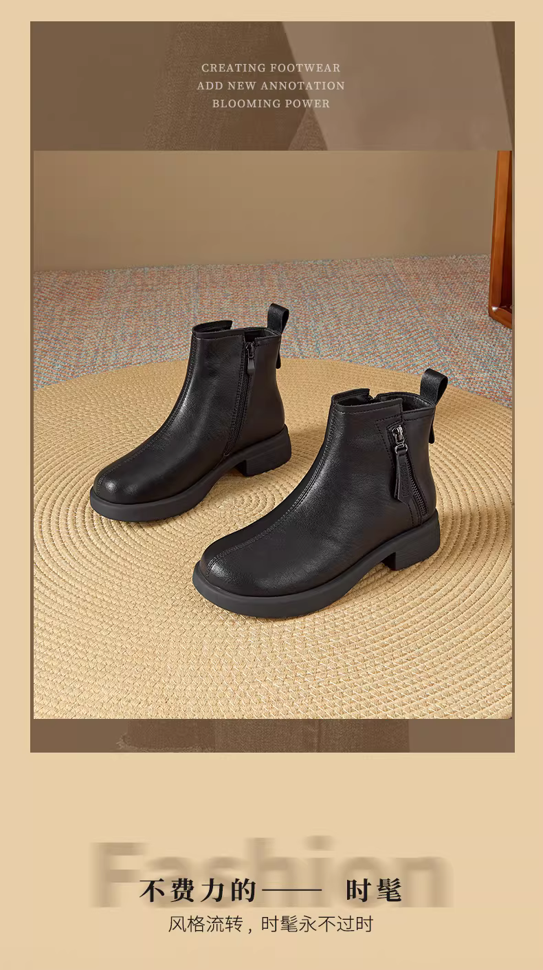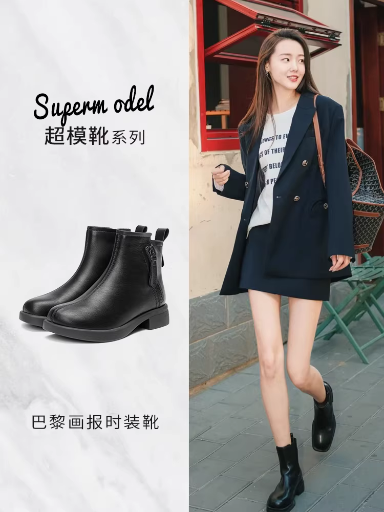 - Giày bốt giữ ấm lót lông Dadong dành cho nữ, mẫu mới thu đông 2025, màu đen, kiểu dáng ôm sát, cổ ngắn, kiểu Chelsea, thời trang.