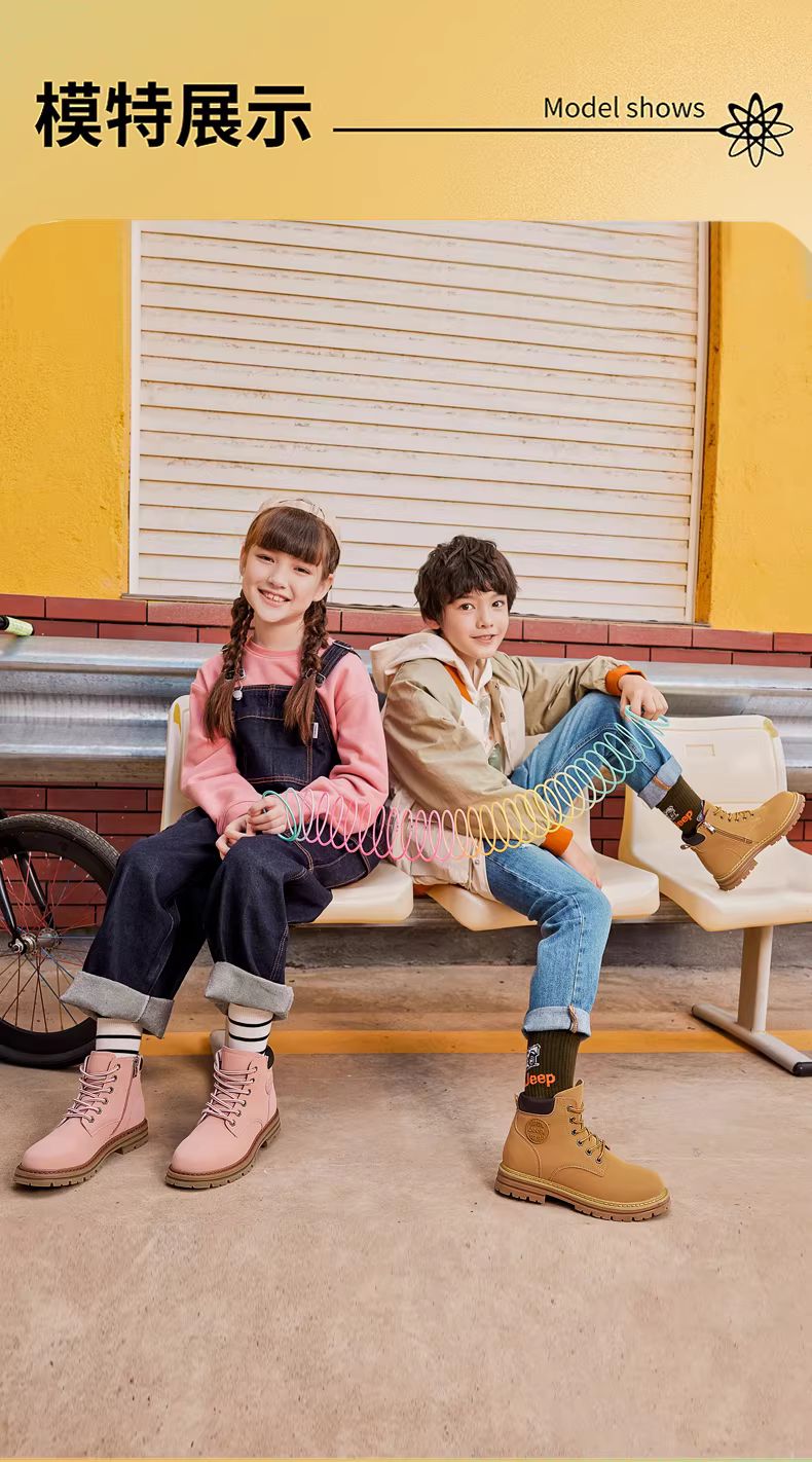 - Giày bốt Jeep Martin trẻ em da thật mùa thu ngoài trời 2025 giày bốt da nữ mới đi bộ đường dài giày bốt màu vàng cho bé trai