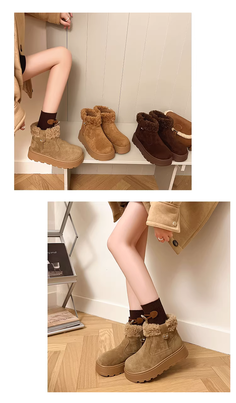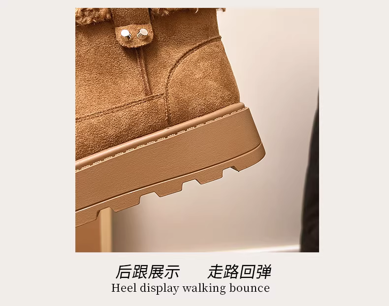 - Giày bốt lông dày đế dày phong cách Đông Bắc cổ điển màu nâu dành cho nữ, giày cotton kiểu Birkenstock giữ ấm mùa đông mới năm 2025.