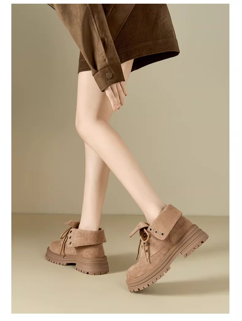 - Giày bốt Martin cổ lật Dadong retro dành cho nữ, mẫu mới phổ biến mùa thu đông 2025, bốt ngắn đế dày hai kiểu mang, bốt đi làm.