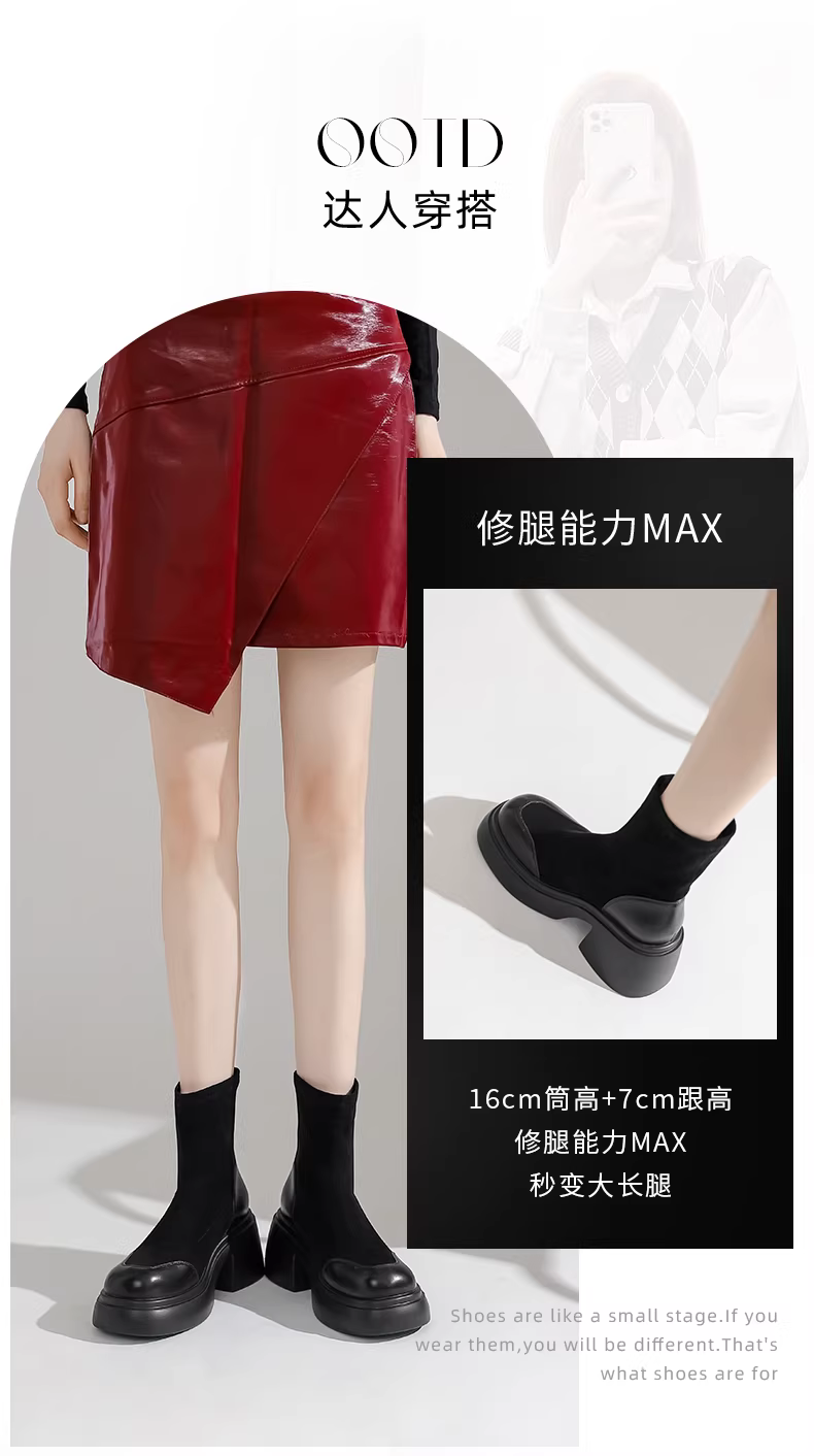 - Giày bốt Martin da lộn Daphne dành cho nữ, kiểu bốt tất đen, mẫu mới thu đông 2025, đế dày, kiểu dáng thon gọn, tăng chiều cao.