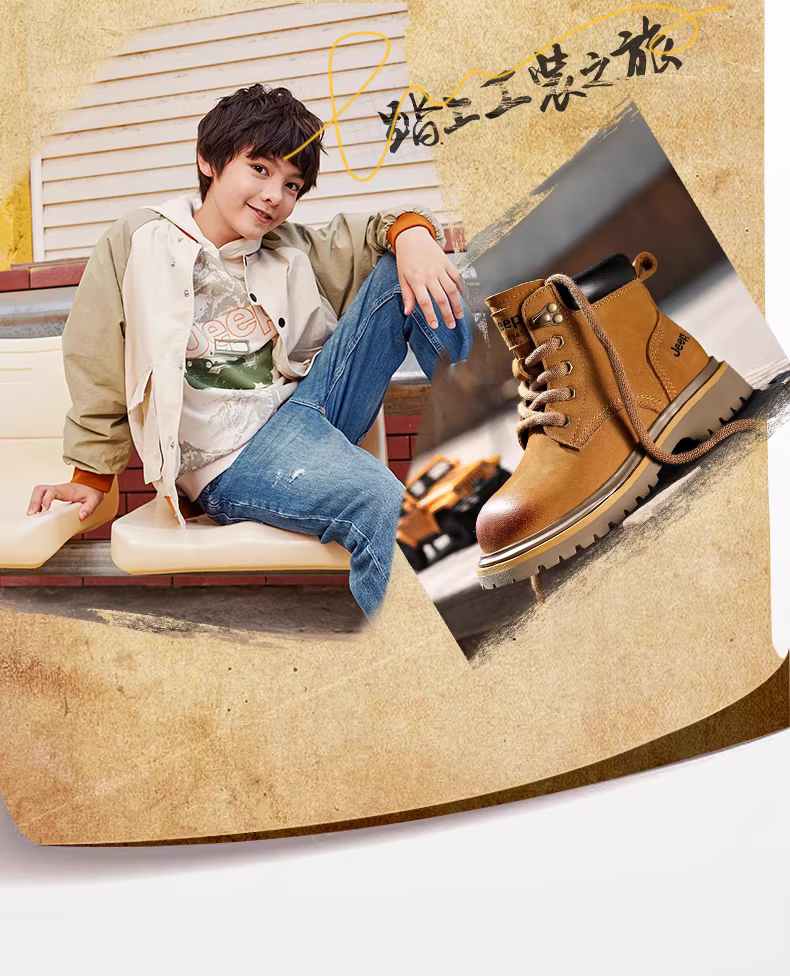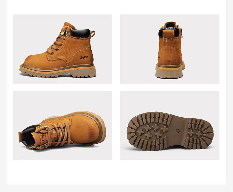 - Giày bốt Martin da thật trẻ em Jeep 2025 mẫu mới xuân thu giày bốt bé trai bé gái mùa xuân thu cổ điển màu vàng