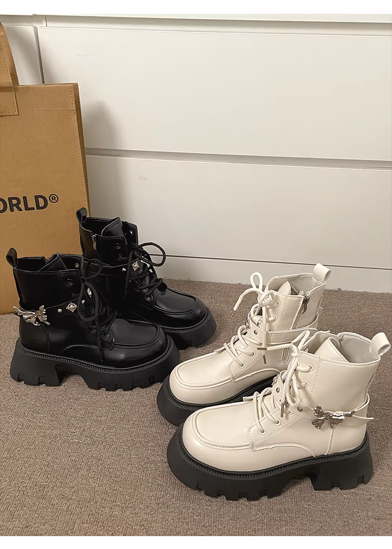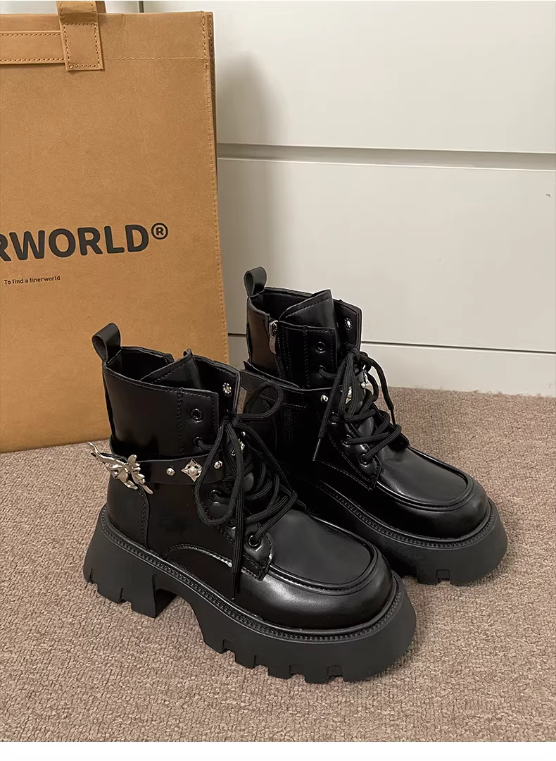 - Giày bốt Martin đế dày đa năng kiểu Anh đen dành cho nữ nhỏ nhắn, mẫu mới thu đông 2025, đế mềm tăng chiều cao.